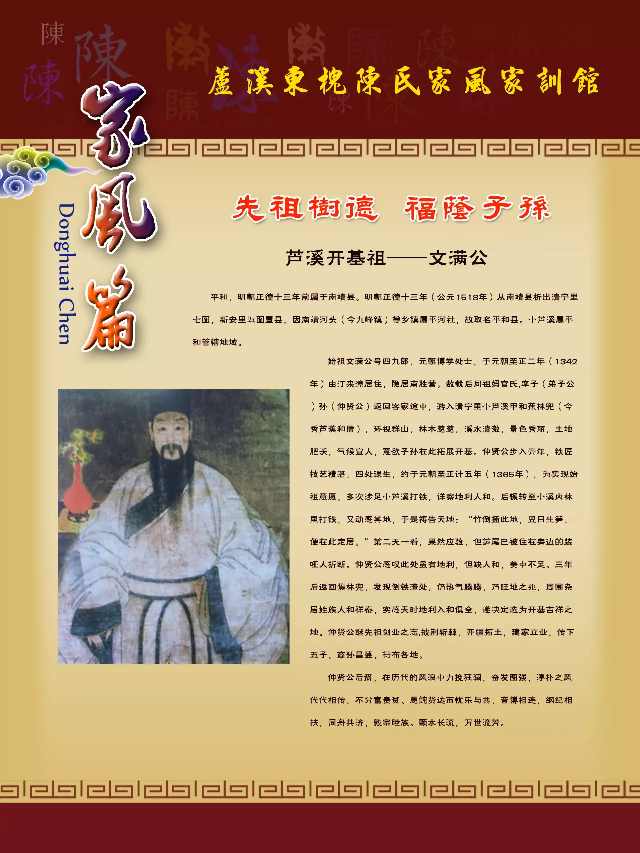 义门客家陈氏,源自虞舜,始于妫满,封于陈国,迁于齐,相于汉,发自太丘,衍于颍川,帝于南朝。派衍江州义门,发祥福建汀州,播迁神州大地。中原汉民五次大迁徙,两宋之际义门客家诞生,谱写了波澜壮阔的历史新篇章。据全国各地义门客家陈氏族谱及相关史料记载,现辑录历史上及现当代对国家、社会、宗族有重大贡献的义门客家代表人物,以砥砺鞭策吾族裔孙后昆。