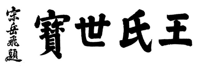 岳飞为《王氏宗谱》题词“王氏世宝...