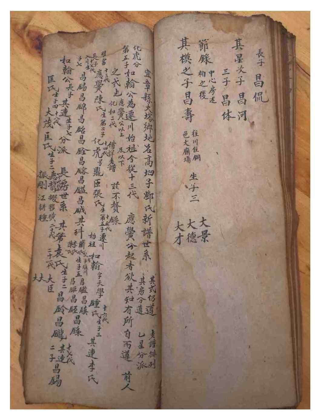 昌夀,其模公之子,娶氏不详,生子三:長大景,次大德,三大才,往川住銅邑大廟埸。