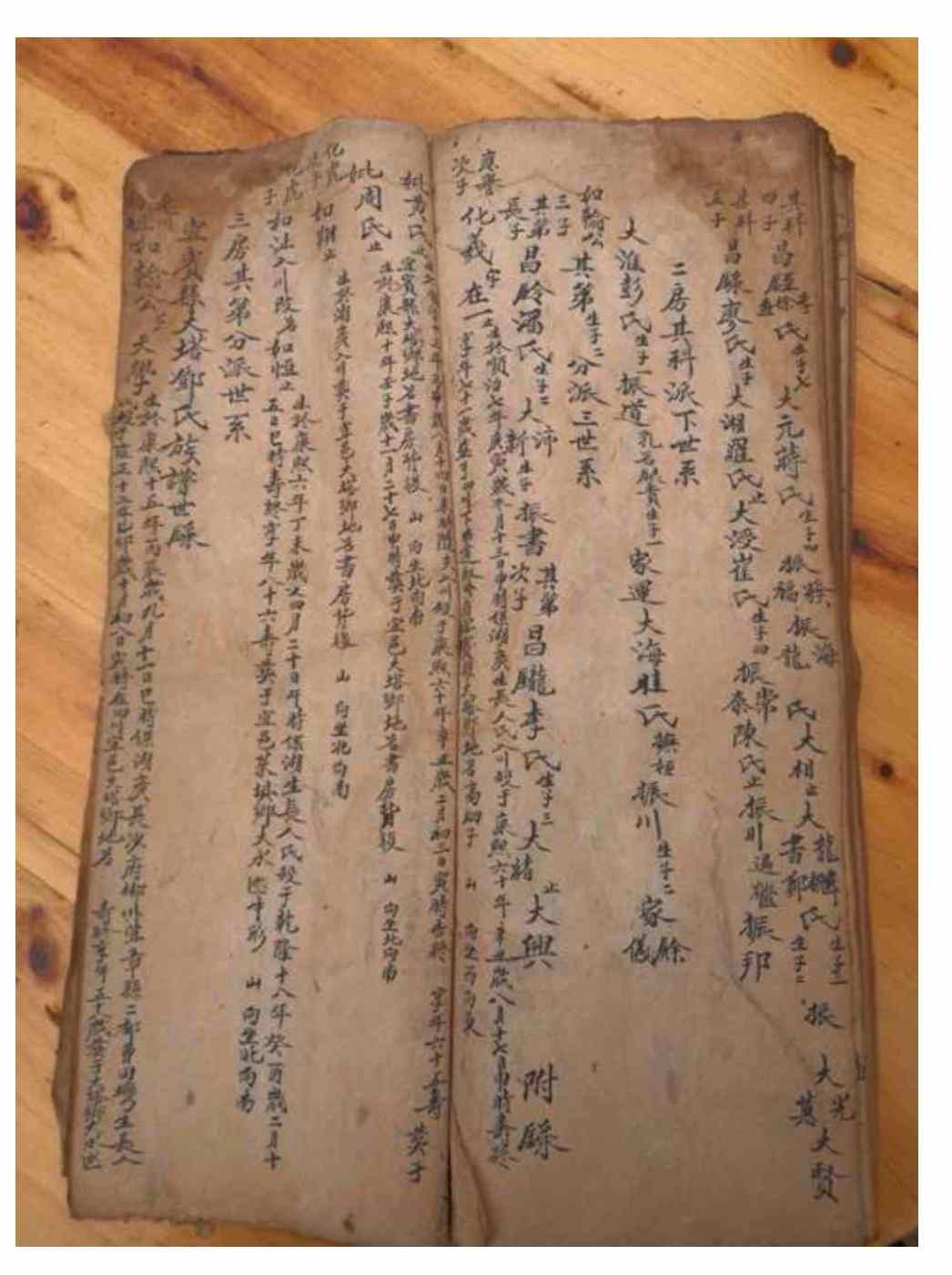 老弯里永源公房,述政公派下斯首世系,十世斯首,居竹海,配谭氏、白氏生子一:文华。
