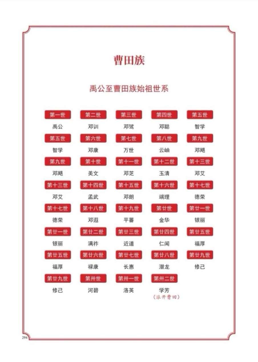 附:曹田邓氏排行及后裔发展分布情况