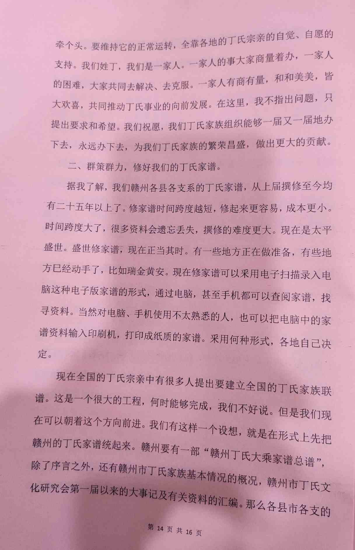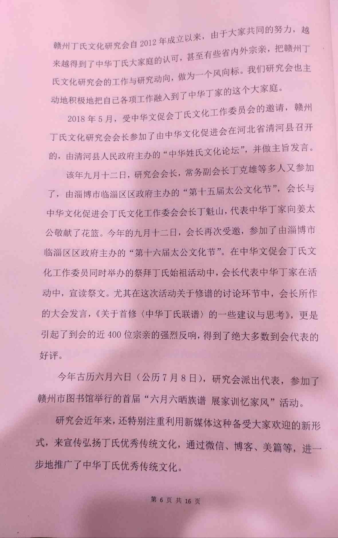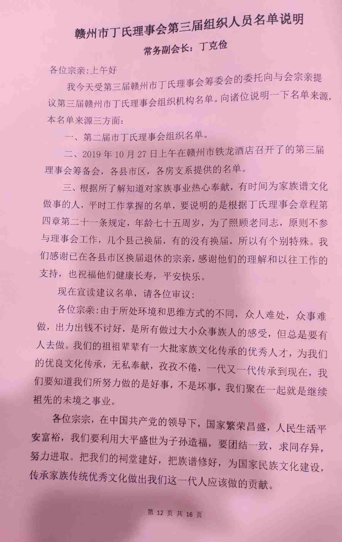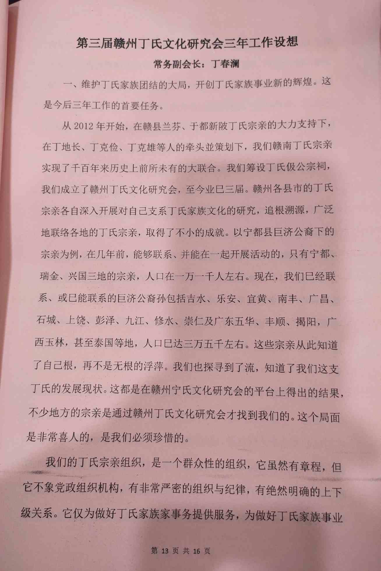 11月9日赣州市丁氏文化研究会第三届第一次代表大会。在赣州铁龙大酒店召开。此次会议邀请赣南18个县市区的丁氏宗亲代表参加,深圳闻诺科技赣州分公司钟惠金,冯财萌,陈东北也应邀参与。