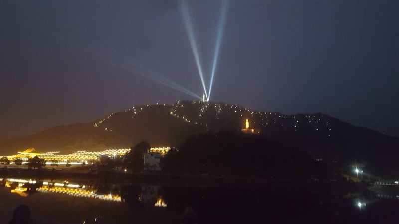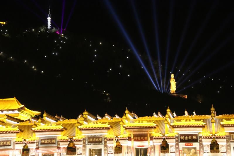 中国赣州南康百家姓和谐城的夜景:2018年春节,中国赣州南康百家姓和谐城,在南康区委区政府的领导下,又新添一景,即"亮化夜景",使得原本十分秀丽庄重的和谐城锦上添花,这正如南康百家姓和谐城姓氏文化研究会会长、市长赵美询所说: "和谐城及南山景观灯,是南康的独特景区。凡摄影爱好者的优秀作品,都可以晒一晒,以庆祝新春到来。感谢区委政府给市区带来一年改变面貌,不是说说,而是干出来了!"