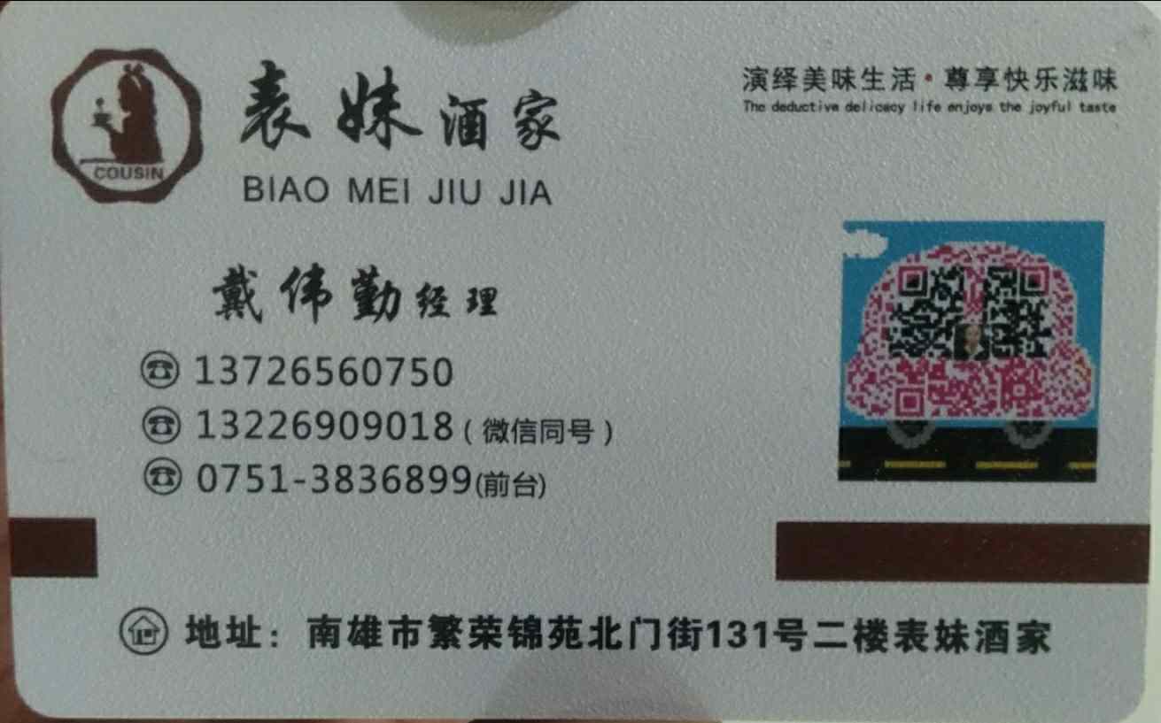 南雄表妹茶餐厅位于繁荣锦苑北门街131号二楼,店内环境优雅,独特,更有临街观光雅座,酒席大厅;本店主营:早茶,夜市,中晚餐,包餐,外卖,酒席,各类聚会,港式风味茶餐厅;烧腊,西餐,中餐,粥,面,奶茶,咖啡,三文治,甜品等……