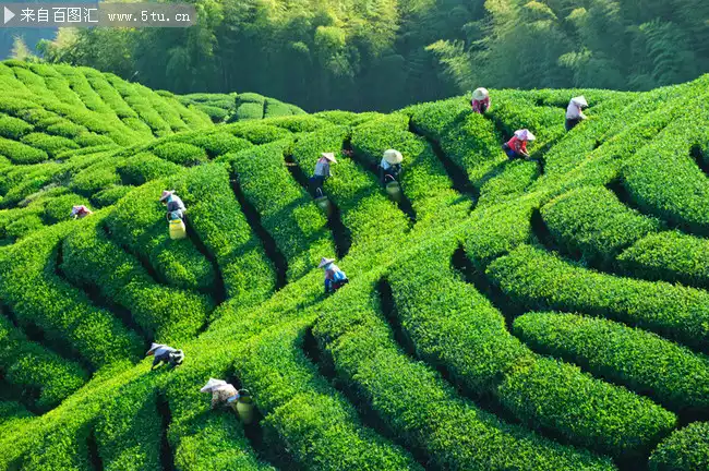 茶树是绿的,蜿蜒着,一波接着一波,层层叠叠;山是绿的,连绵起伏,弥漫着浓浓的绿茵。