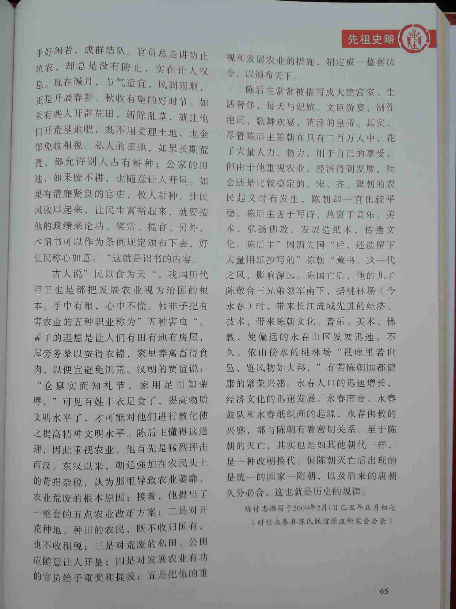 (资料主要来源于《中华陈氏大典》(源流卷),《福清陈氏大宗谱》,《永春县陈氏南朝派族誌》,《福建义门陈》。等等。)
