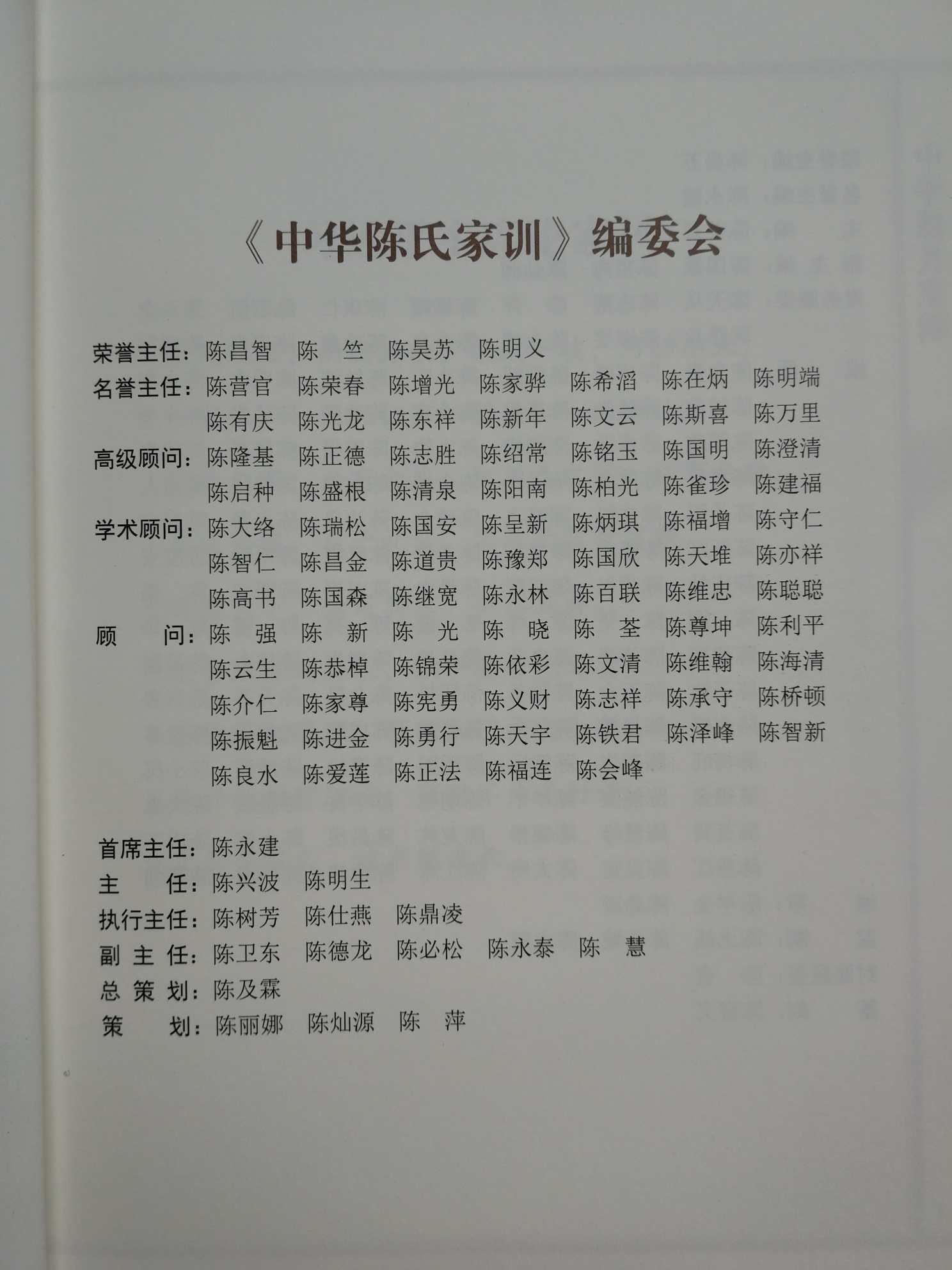 陈氏自古崇道德,尚礼义,忠孝传家,诗书继世,以耕读为世业,以仁义为家法。仁亲为重,轩冕为轻,读陈氏祖训家规可知也。 家之有规,犹国之有法也。国有法,则赏罚以饬臣民;家有规,寓劝惩以训子弟,其理一也。或曰:圣贤遗教,备载经典,又何必家训?家训也者,所以济圣训之所不及也。盖经典惟通达古文者知之,而今国学衰微,人心不古,礼崩乐坏,莫谓愚夫愚妇不知秦汉,即使读书人又有几人能知六经?若无圣教,则不知伦理,此世风所以浇漓、道德所以沦丧也。家训正可为六经注脚,泽被子孙后代,匡正世道人心也,故不可不传、不可不遵也。又必每年春分、冬至祭祖以后宣讲一次,后世子孙慎勿视为具文,皆明是非,弃恶向善,则庶可修身齐家,光前裕后也!