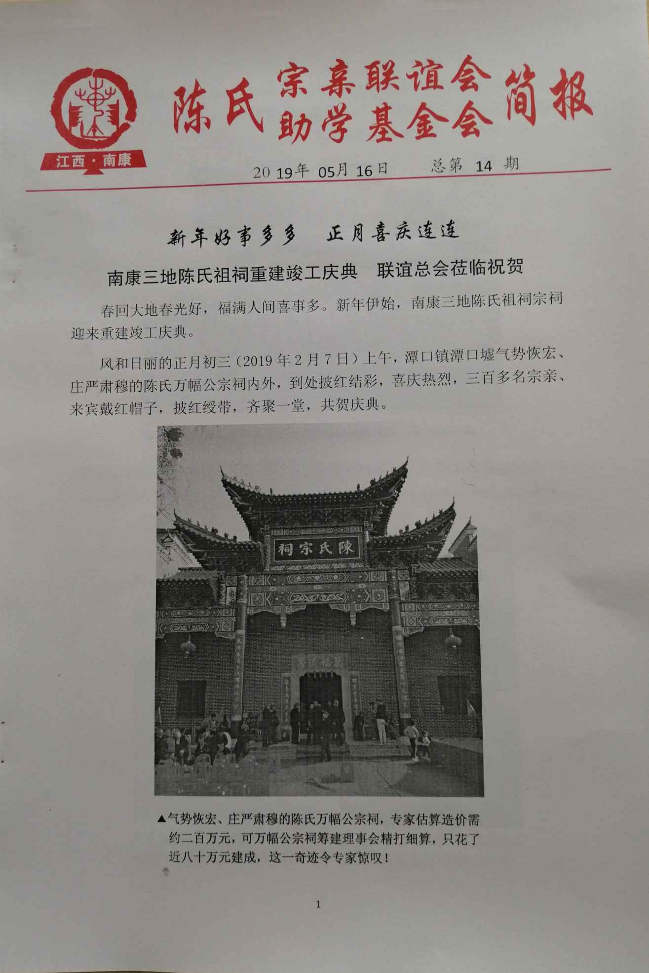 南康陈氏宗亲联谊会 助学基金会 简报 总第14期