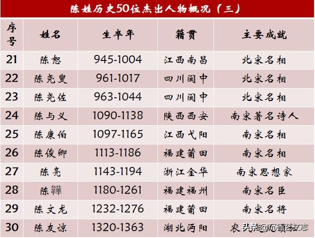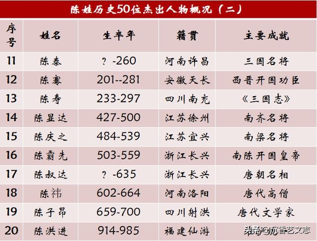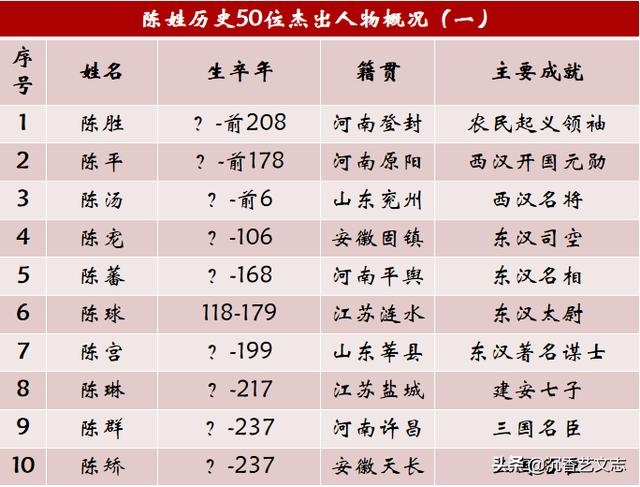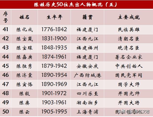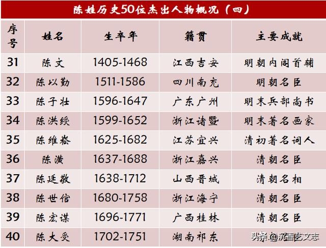 陈姓历史上的五十位杰出人物
