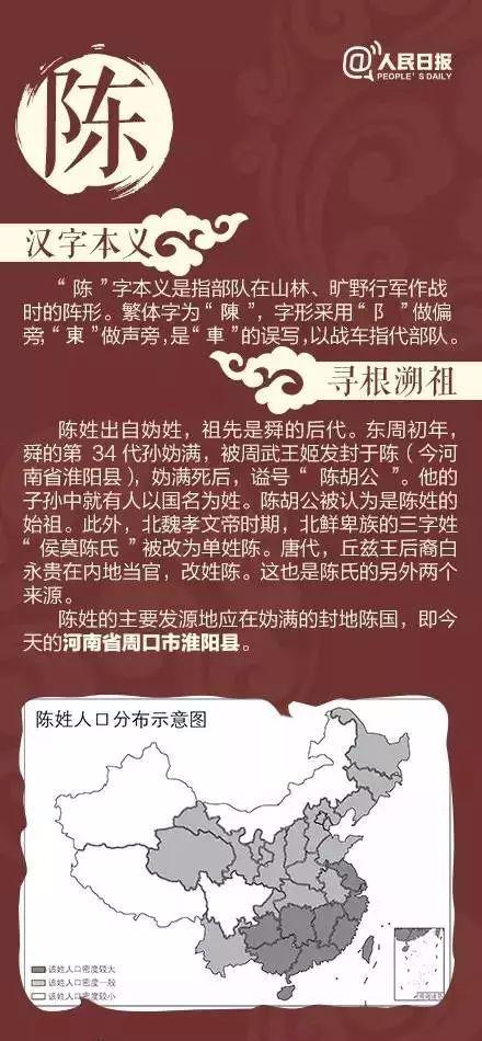 上海市:上海市中心区陈姓比例5.5%与全市持平,排名第三位。