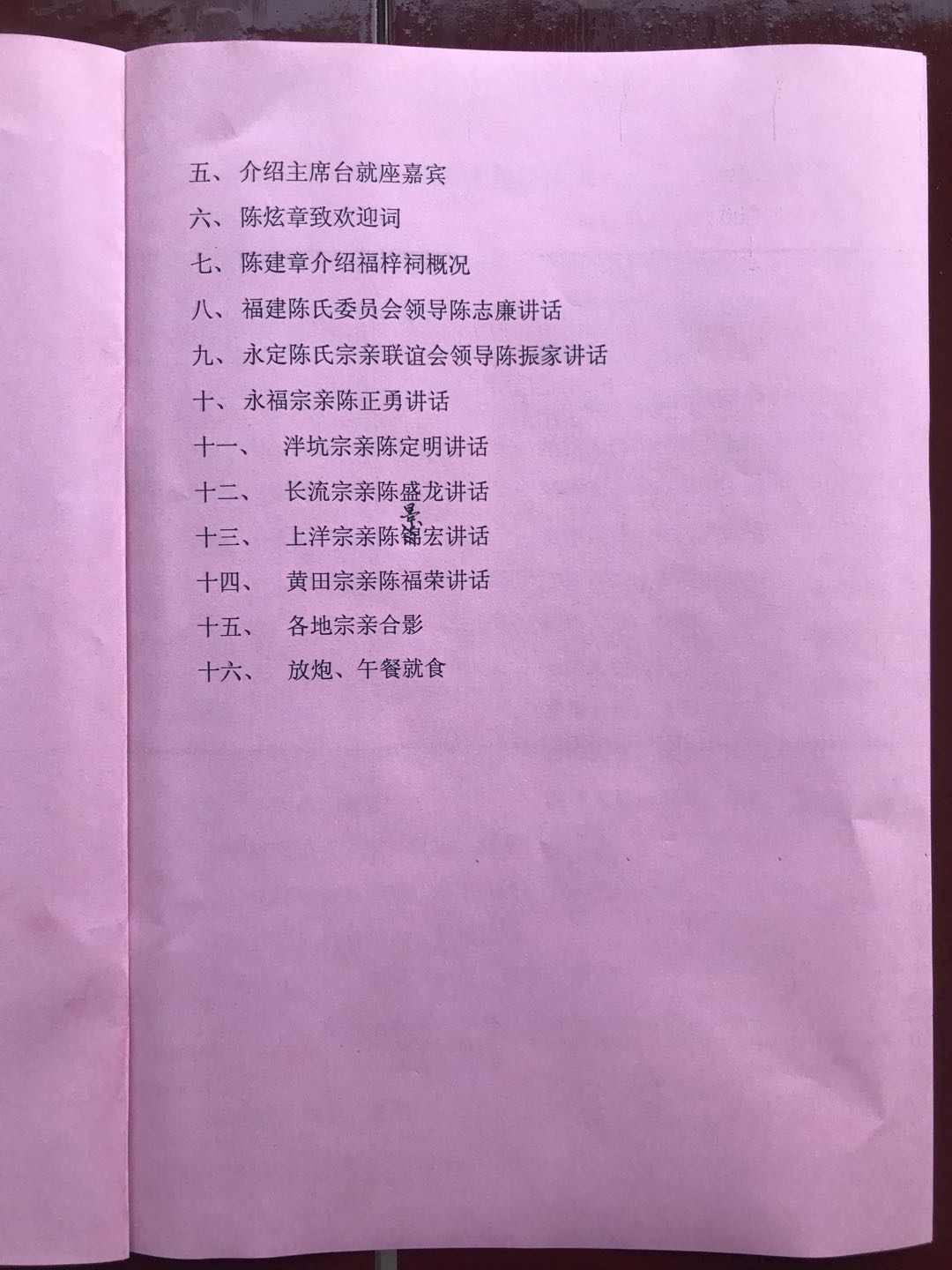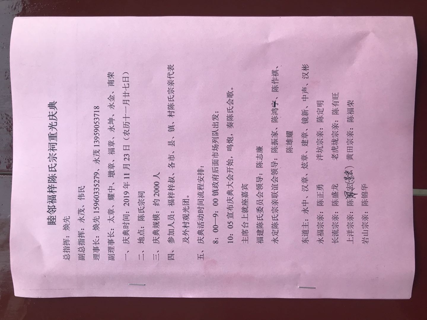睦邻福梓陈氏宗祠落成庆典程序:一,大甲圩镇政府后市场集中。8:00一9:00镇政府后面市场列队出发。