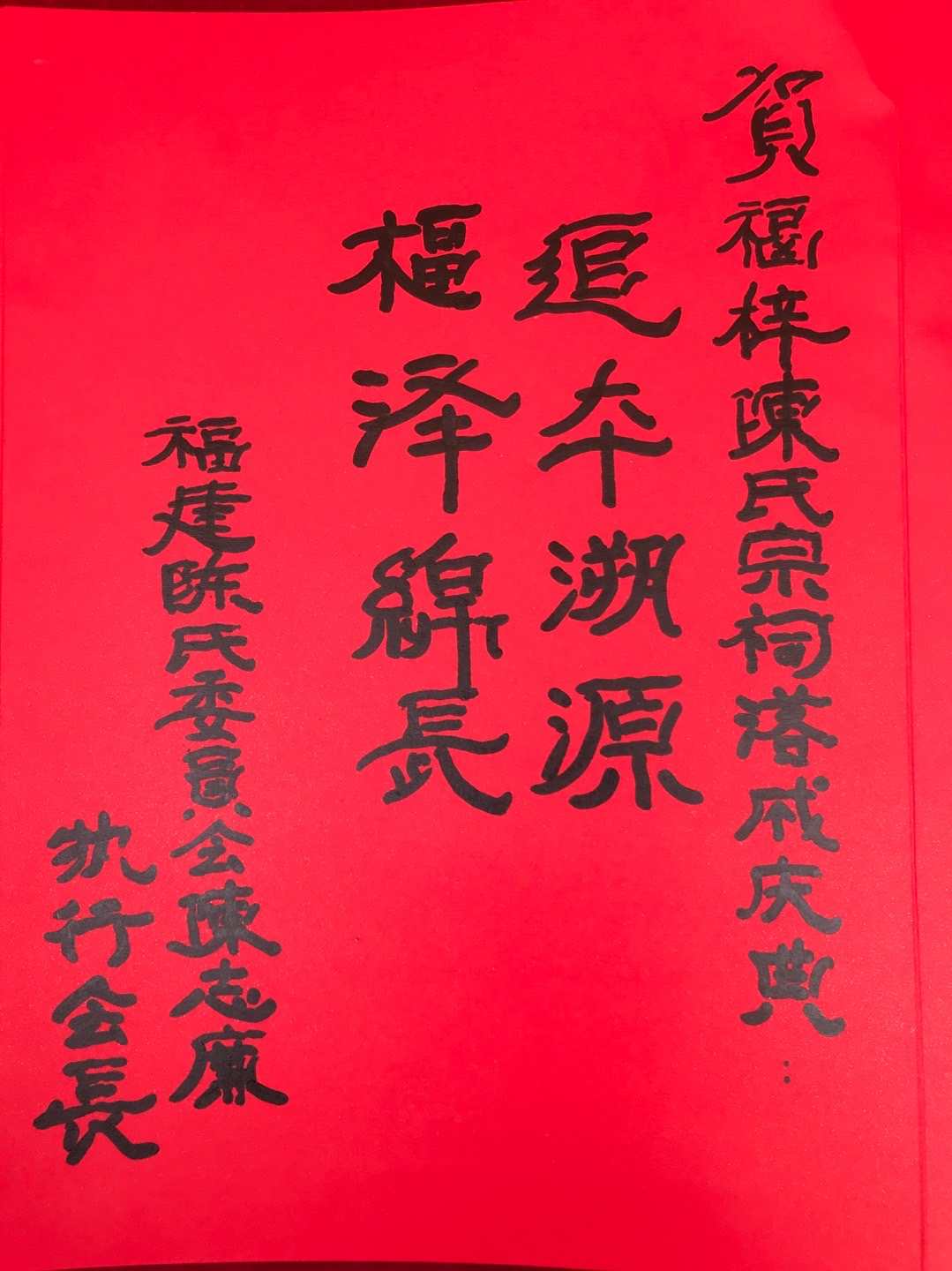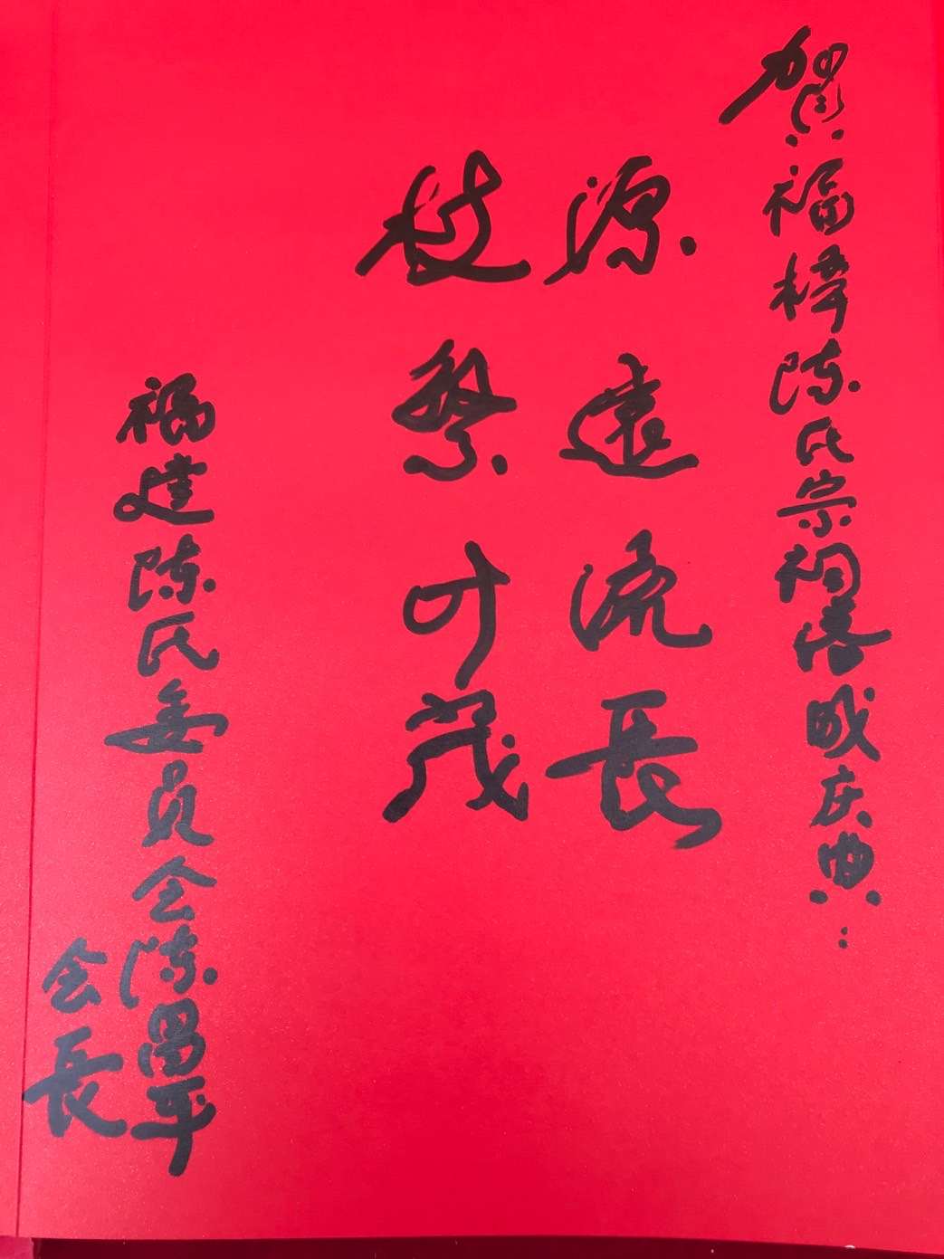 福建省陈氏委员会给福梓昌后祠赠送字画