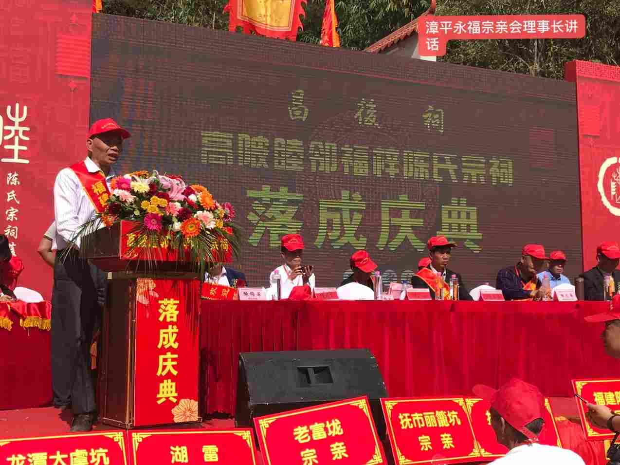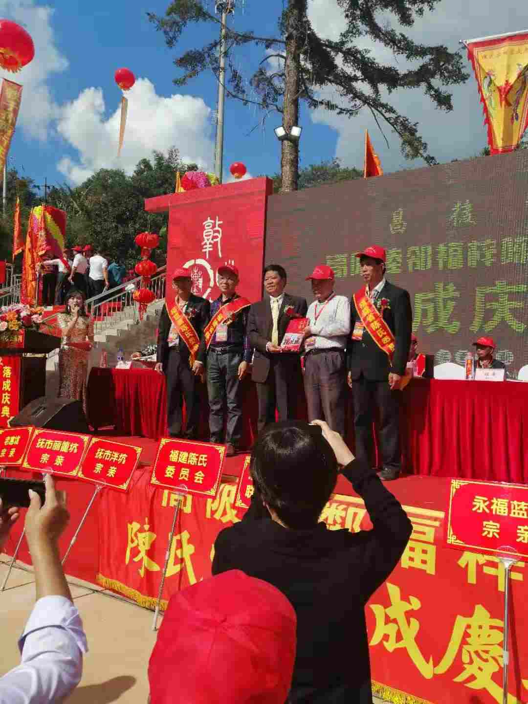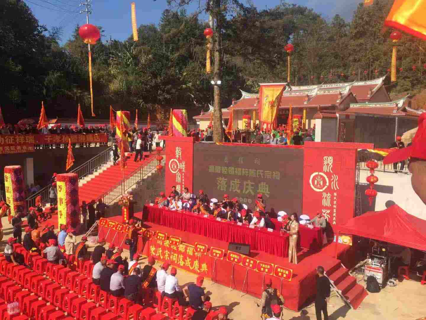 黄道吉日,阳光明媚。2019年11月23日(农历十ー月廿七日)上午,永定高陂镇睦邻福梓村陈氏昌后祠重建落成庆典活动隆重举行。参加庆典活动的人员有:福建省陈氏委员会代表团、漳平市永福陈氏宗亲代表团、龙岩市新罗区代表团、永定区各大乡镇村庄陈氏宗亲代表、福梓村梓叔与姑丈姑姑代表及邻村观摩观光团等等,约2000人参加庆典活动。整场活动有条不紊,隆重热烈,喜气洋洋,锣鼓喧天,鞭炮齐鸣。祭祀与大会同时进行,乐队、歌舞、瑞狮队、龙灯队一齐上阵,这次活动最大亮点是龙灯与瑞狮龙凤呈祥,永定上洋宗亲的龙灯队,两条长龙在宝祠齐舞,大大增添了吉利祥和的喜庆气氛,将活动推向高潮。庆典活动圆满成功!