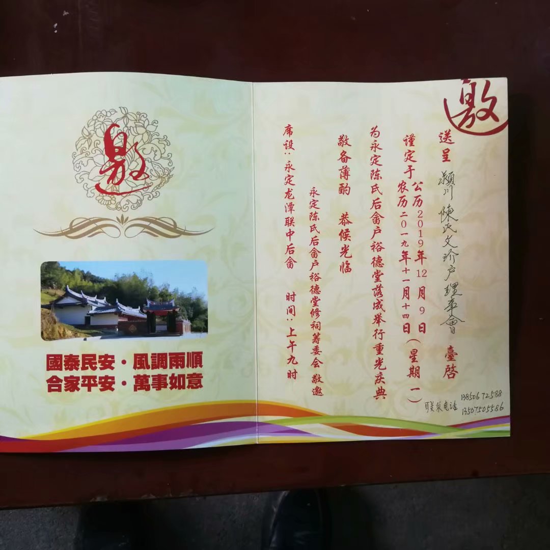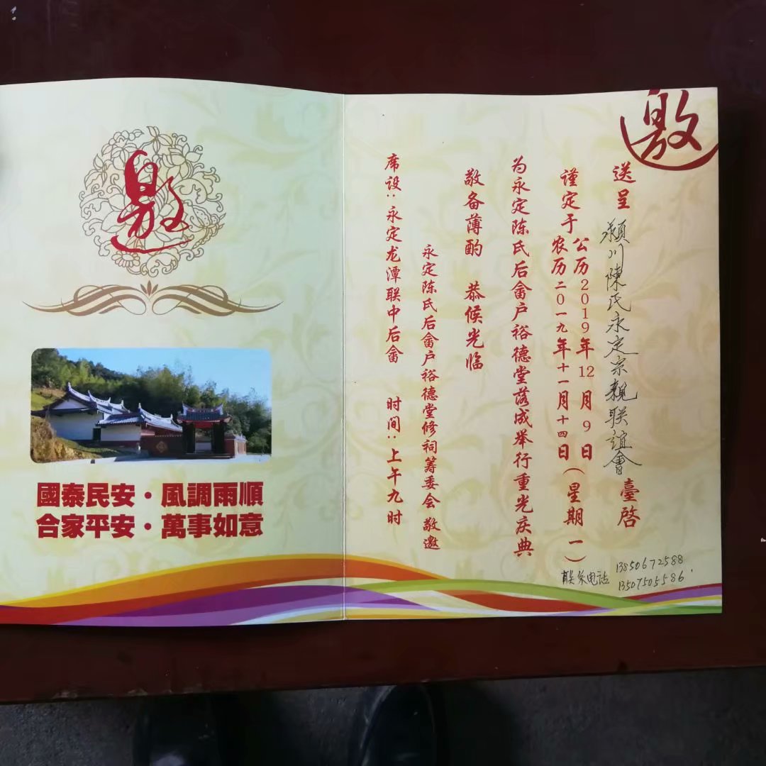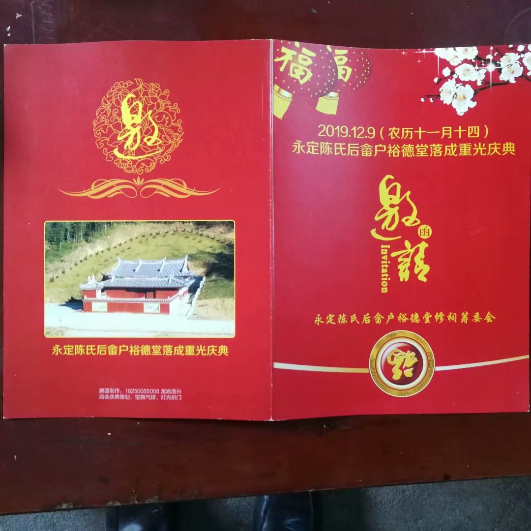 龙岩市永定区龙潭镇联中村后畲裕德堂重光庆典大会暨永定陈氏宗亲联谊会2019年年会活动指南