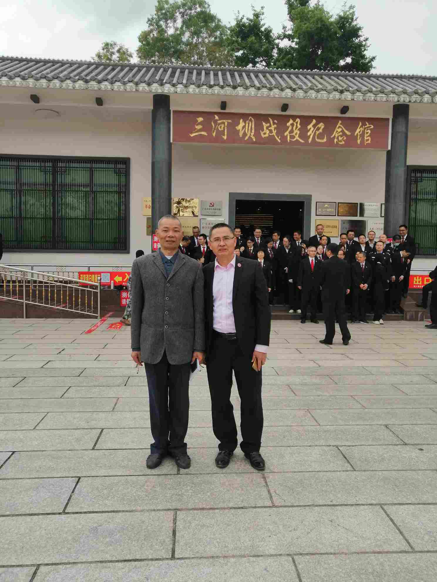 22日上午,考察团在陈建彬会长的带领下参观考察了三河镇汇城村西门墩陈氏光远堂,光远堂以九三学社中央副主席陈明绍家族“一门九清华”而名扬天下。陈讯成宗亲给考察团赠送了《陈氏族谱》,大家在光远堂合影。随后考察团一行顺便参观了三河坝战役纪念馆。