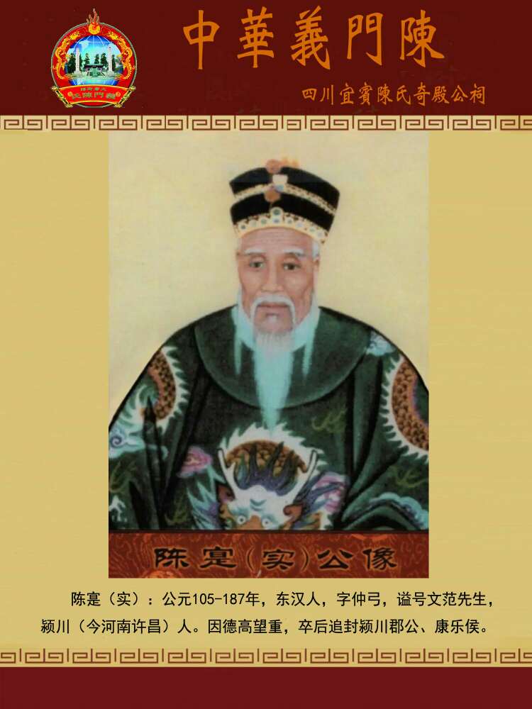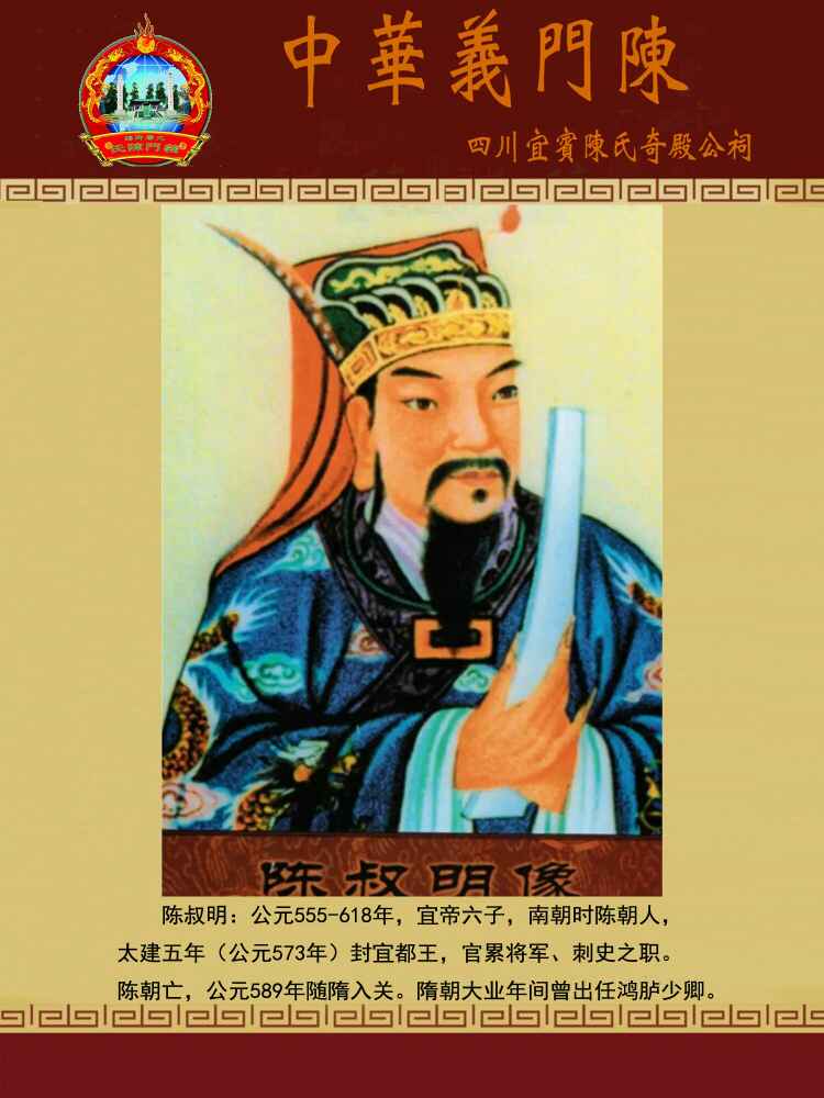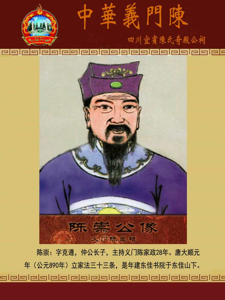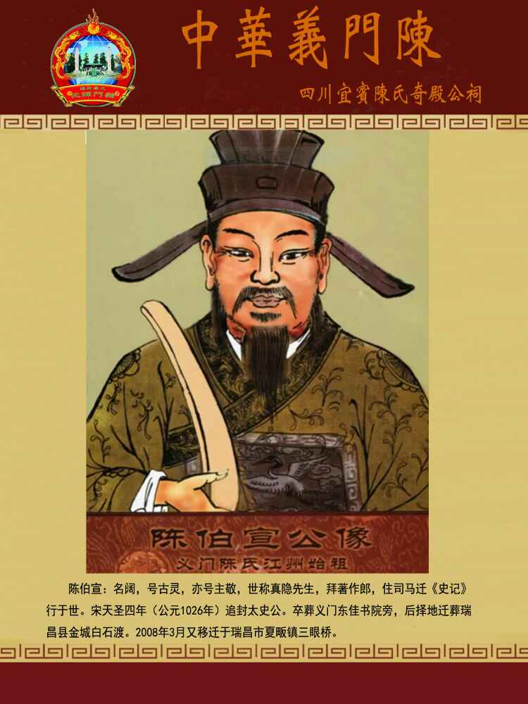 始祖陳公諱茂濂,為宋理宗副章使者,祖妣张氏生七子:陳宗、陳炤、陳宗禮、陳伯玉、陳冝中、陳文龍、陳昌明,其於六房未及俻錄。