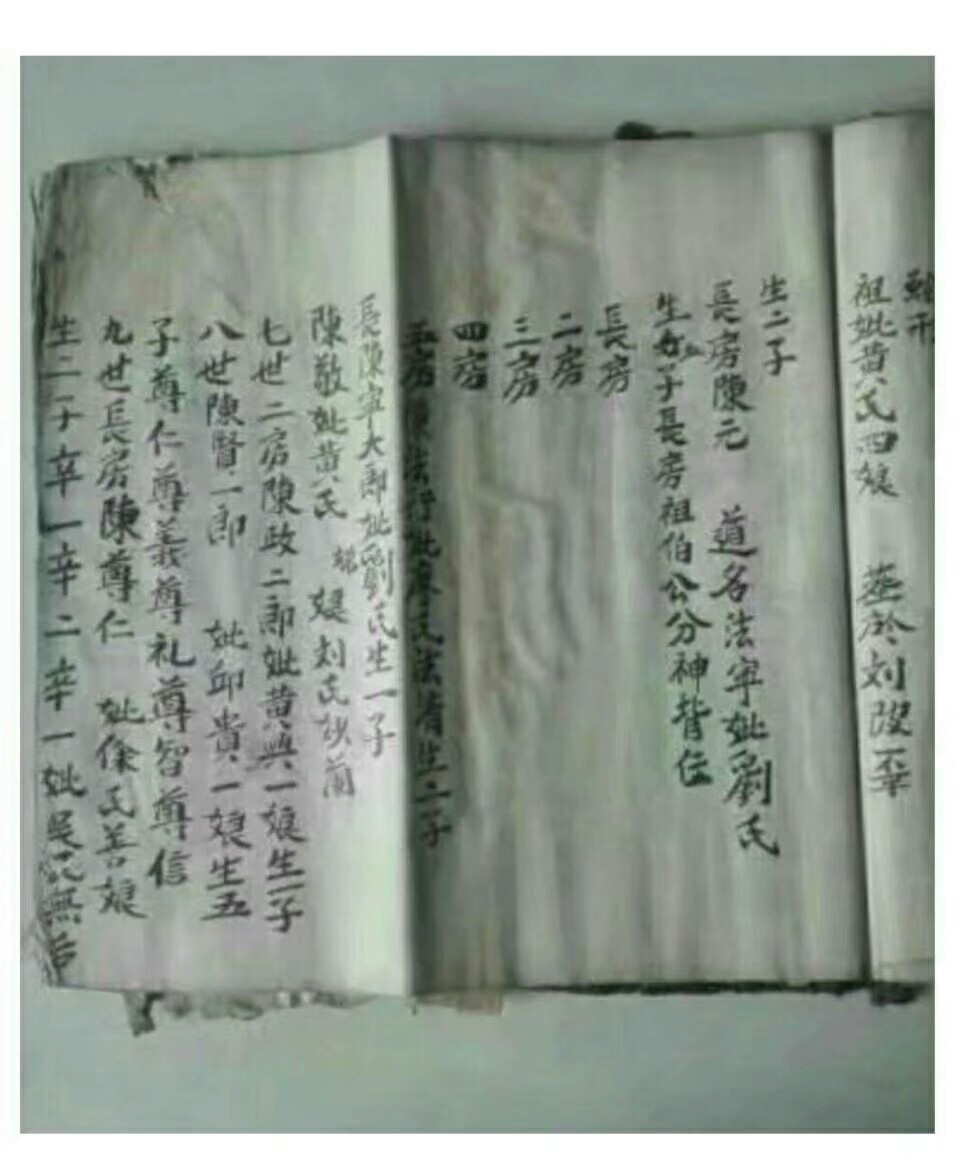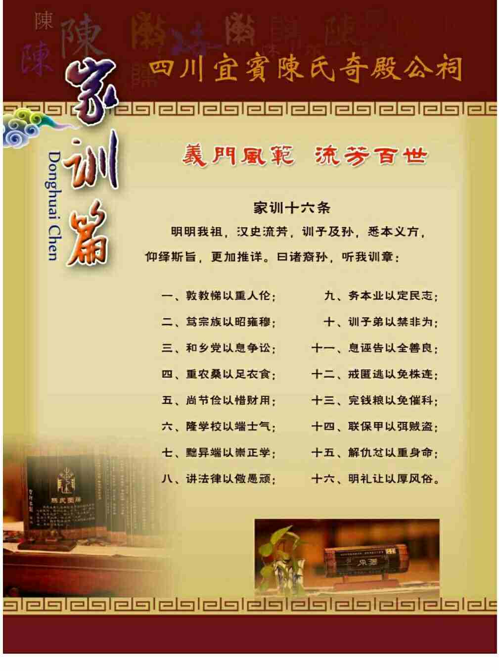 我十三世祖陳公諱道政,妣劉氏生四子:陳夀、陳南、陳兆、陳慶,陳夀後裔仍住原邫,陳慶後裔有住原邫,有上四川简州住居毛家場者。
