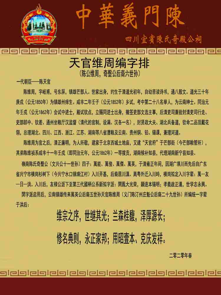 維宗之序,世繼其光;蘭森桂馥,澤厚源長;
