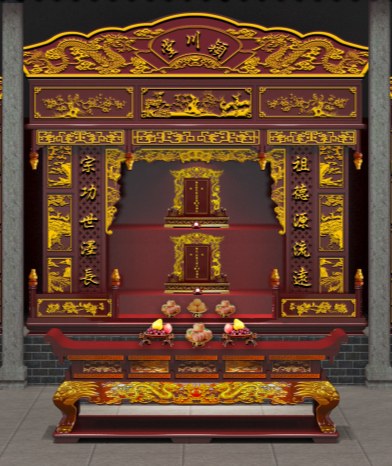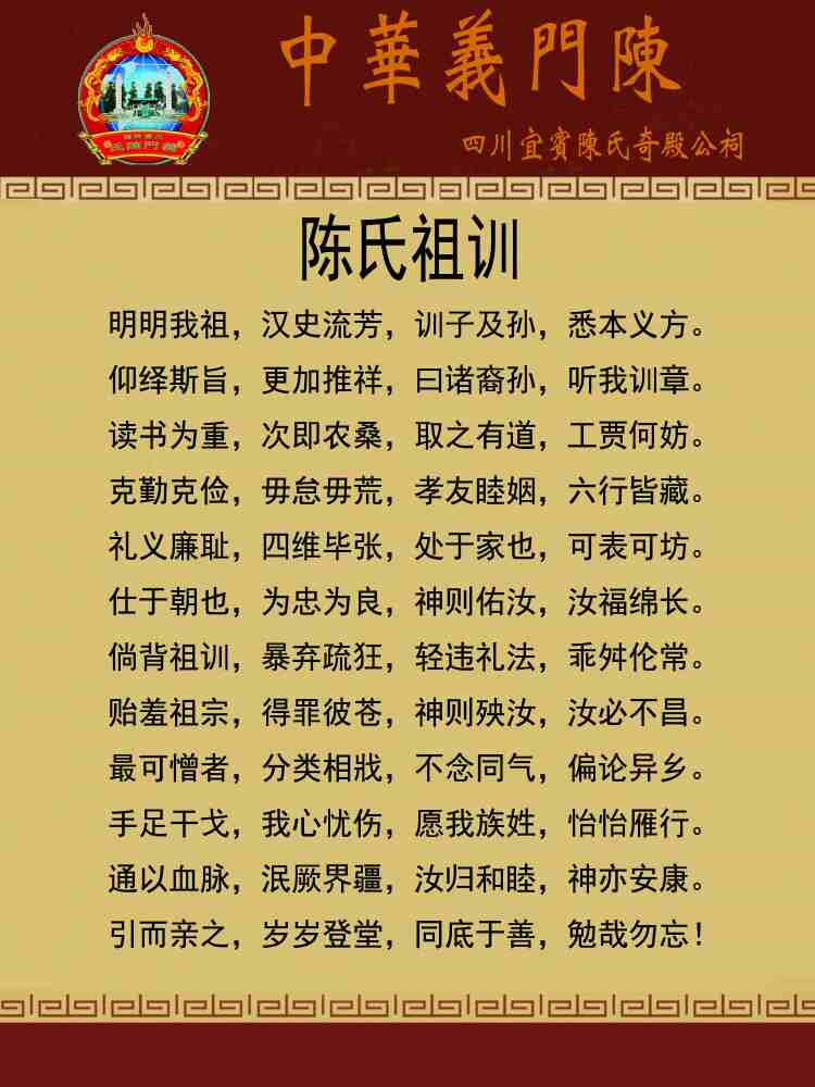 堂内设置,天井主堂。左右侧屋,各有一房。堂有神台,供奉神位。历代先祖,永垂千古。瞻观文化,祭拜祖先。颍川义门,祖德传承。纵观宗祠,气势宏伟。华夏文明,客家移民。弘扬文化,世代传承。