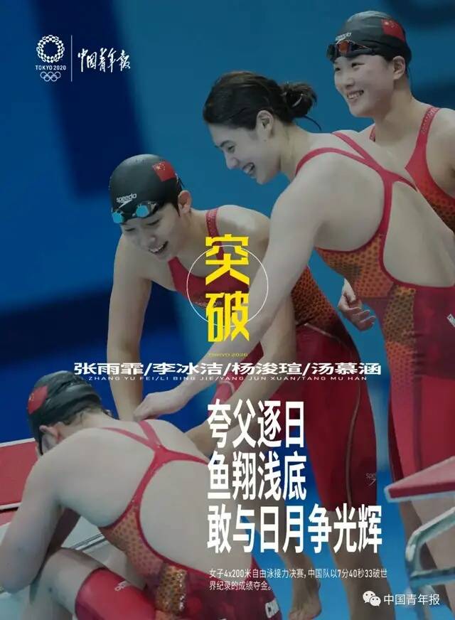 第14金:游泳女子4x200米自由泳接力 杨浚瑄/汤慕涵/张雨霏/李冰洁