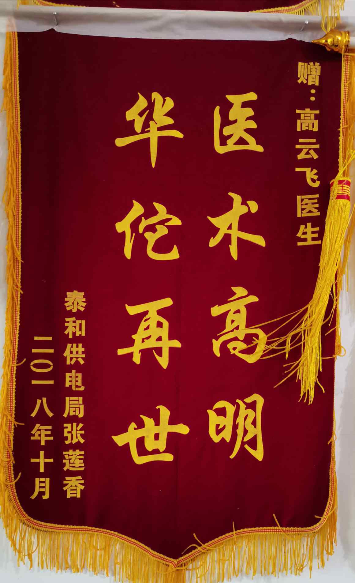 高云飞的医术得益于祖传中医针灸枝艺,他家世代行医,老爷爷和爷爷曾是贺龙部下的一名救护伤员的医士,参加过抗日战争和解放战争,靠针灸绝活救治了不少在战争中负伤的战士,后在战斗中因公殉职。父亲高心亮1946年生, 是当地的名中医,高云飞兄弟五人,他排行老五,自从成家泰和后,于2013年开始为民服务治疗骨痛病以来,继承了祖传秘方,主要是针灸治疗各种经脉骨痛疾病。深得广大患者称赞。