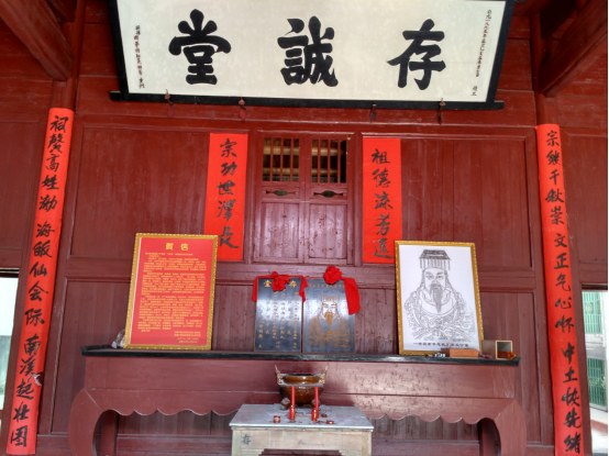存诚堂内有联:上:宗继千秋崇文正气心怀中土恢先绪