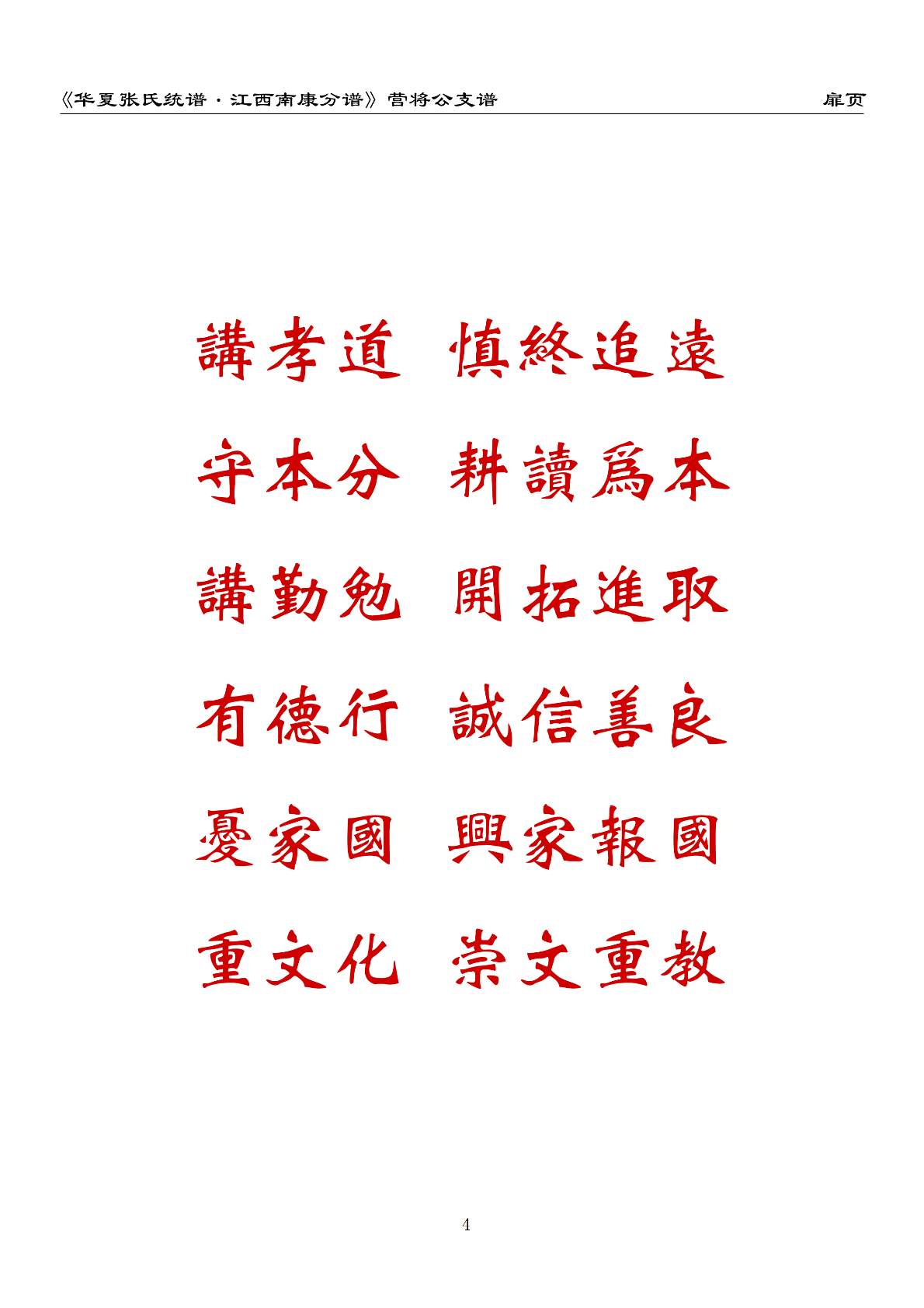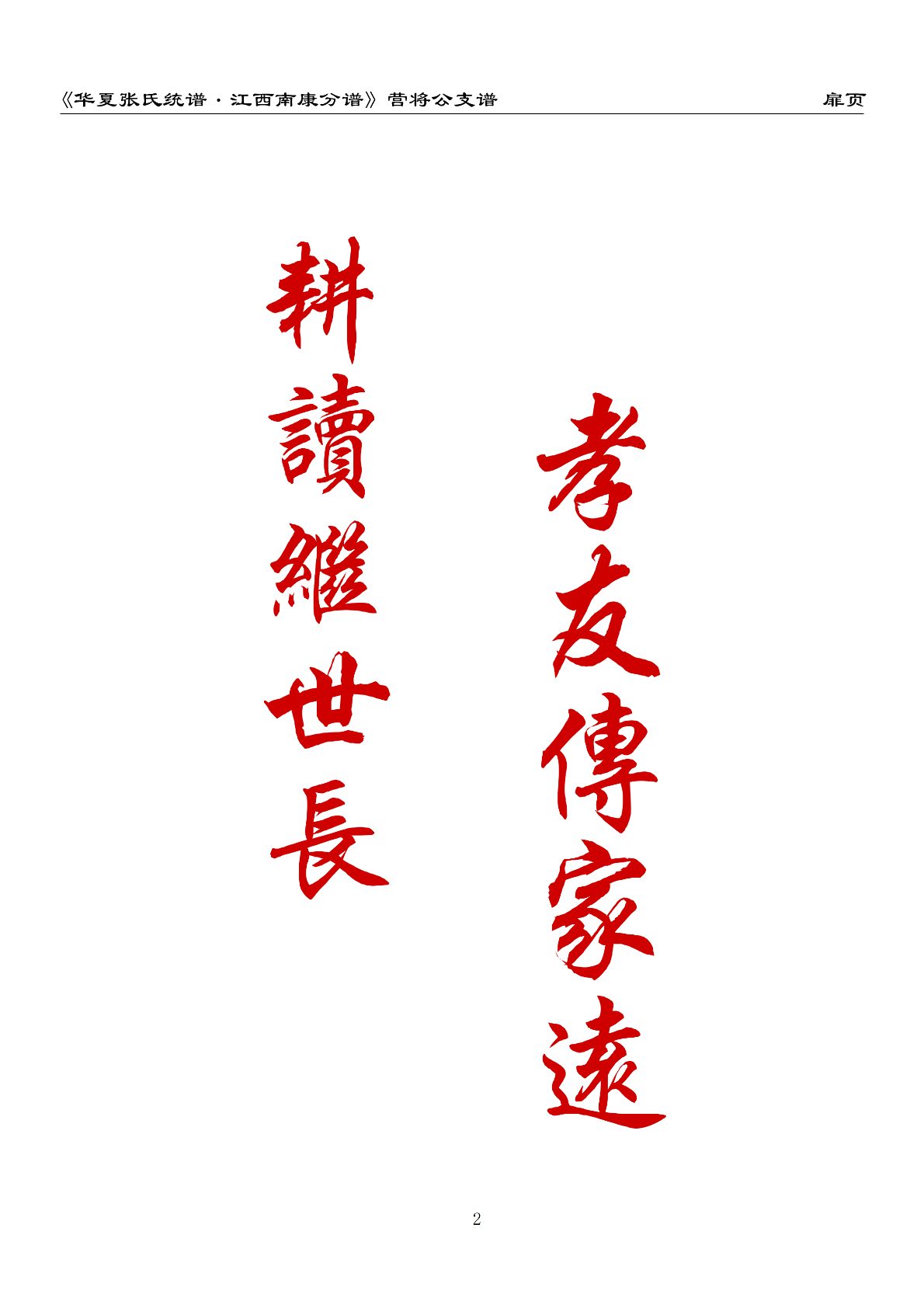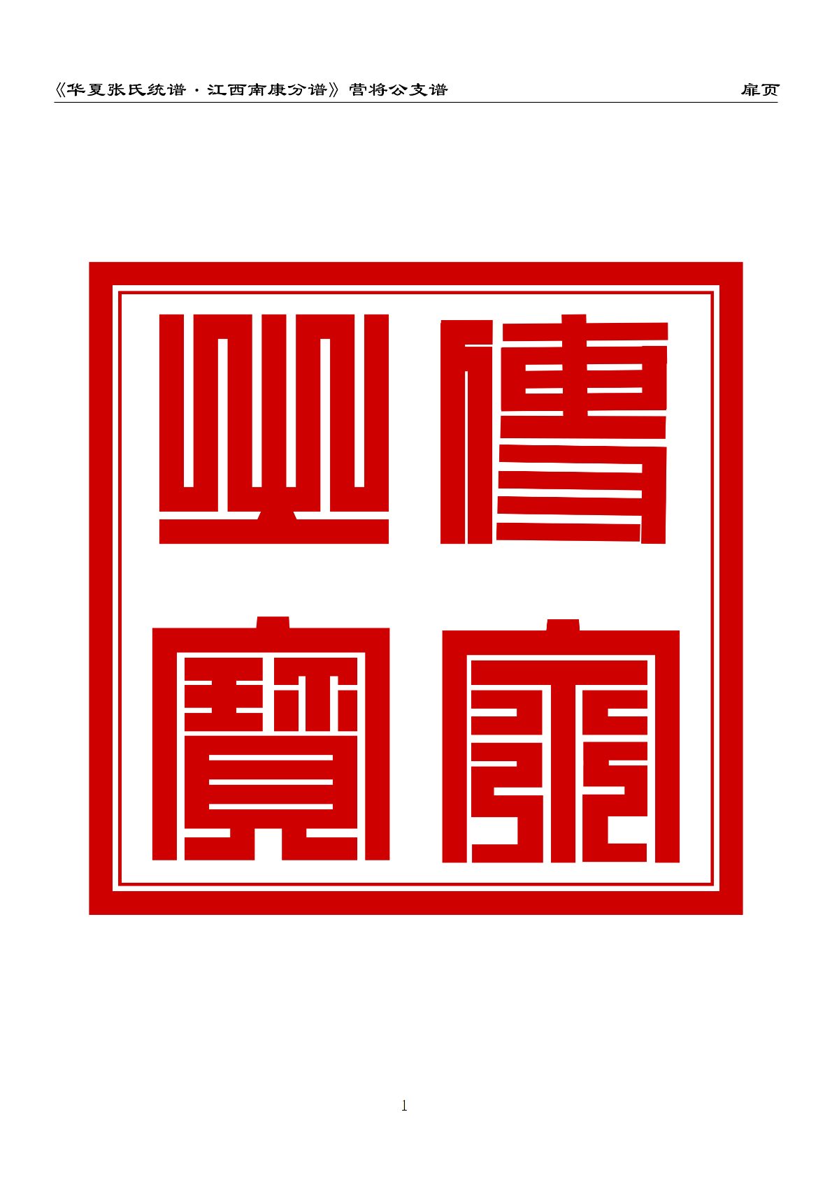 《华夏张氏统谱.江西南康分谱》营将公支谱 扉页