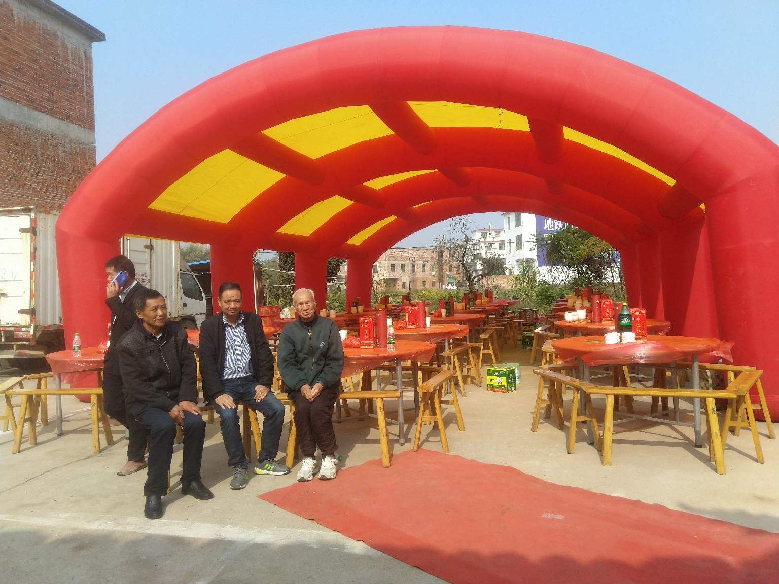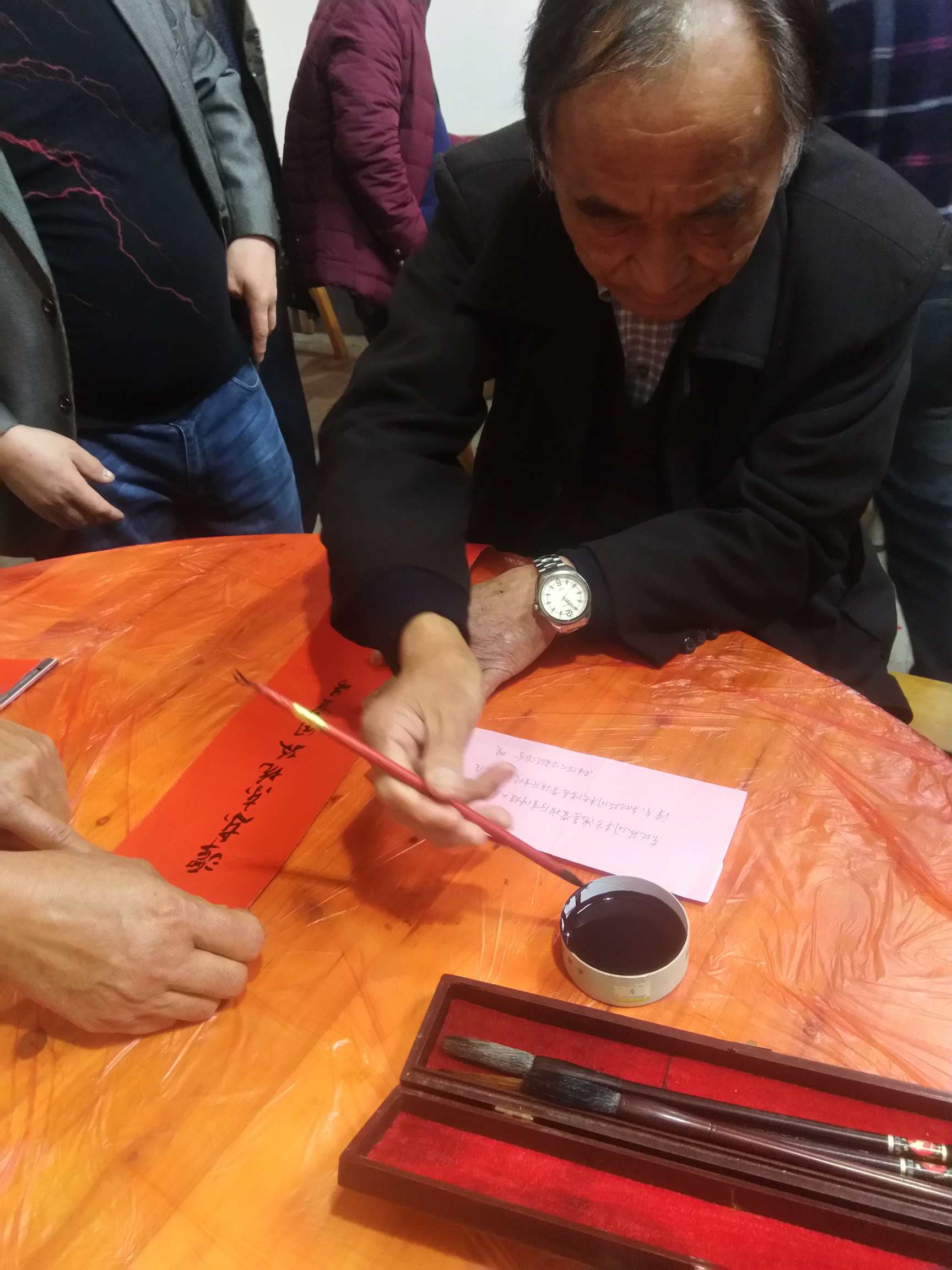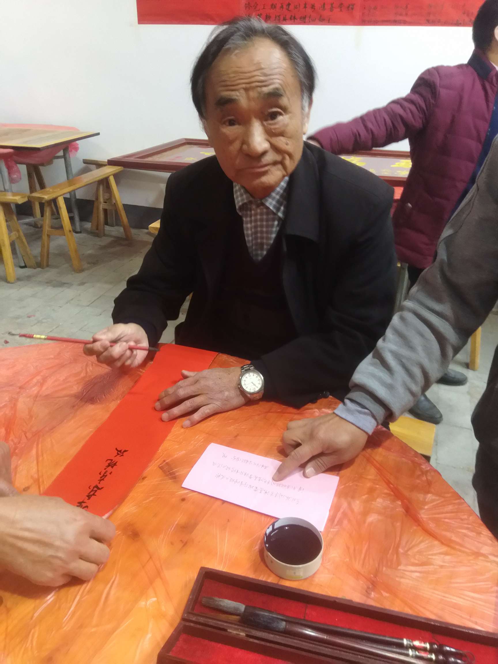 2018年11月25日上午,天气晴朗,南康陈氏联谊会执行会长陈开福率秘书长陈优文,财务总监陈爱金以及爱心企业主陈小明,一行四人,来到潭东镇东坑村,参加同丰号鸿善堂祖厅重修竣工庆典,现场挥毫,书写“鸿运亨通,善举得福”,并发表热情洋溢的贺辞!