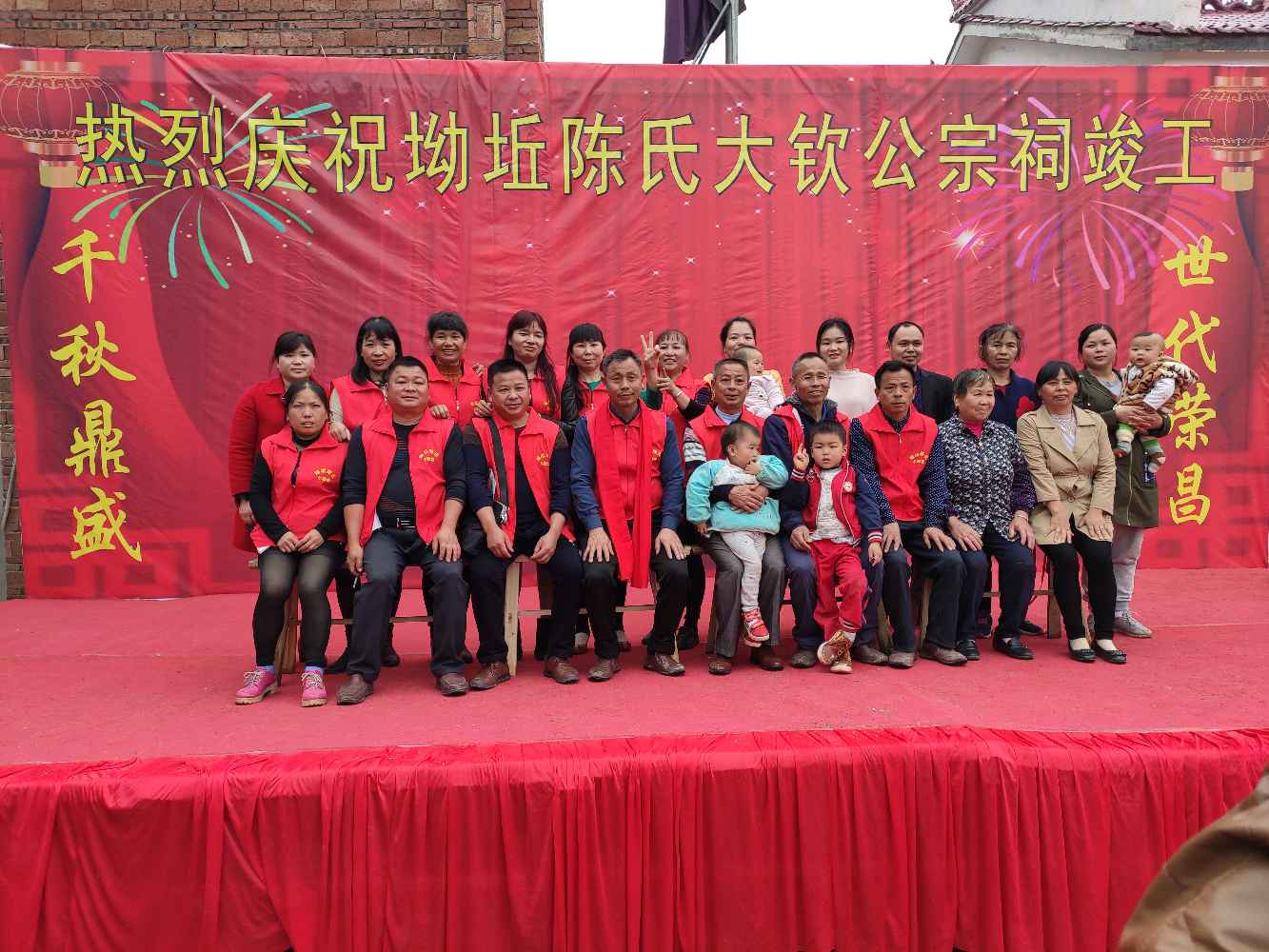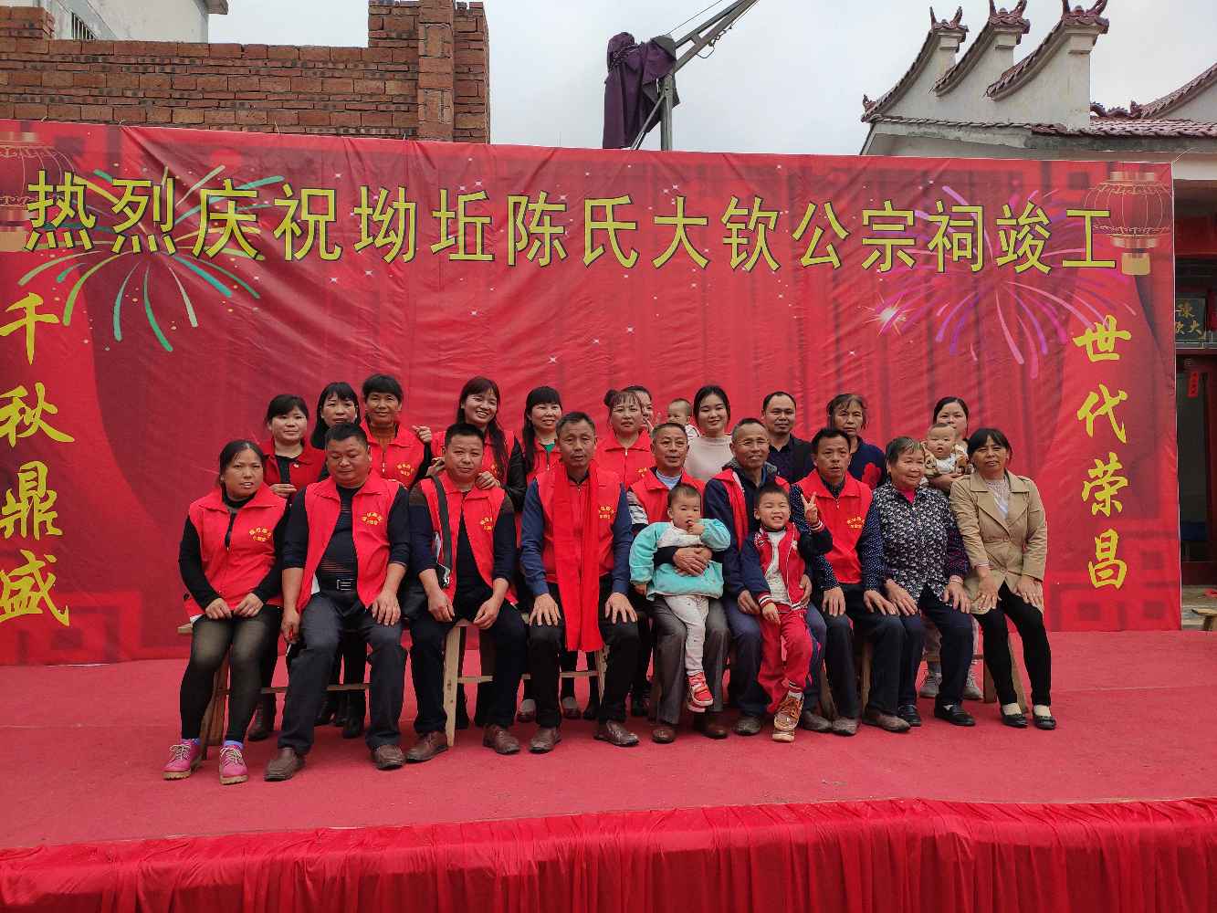 2019年4月15日,春暖花开,大田信江村坳坵陈氏大钦公宗祠举行隆重的竣工庆典,现场近千宗亲齐集一堂,欢声笑语,掌声不断,为庆典演出的节目及各位地方乡贤的祝辞鼓掌。