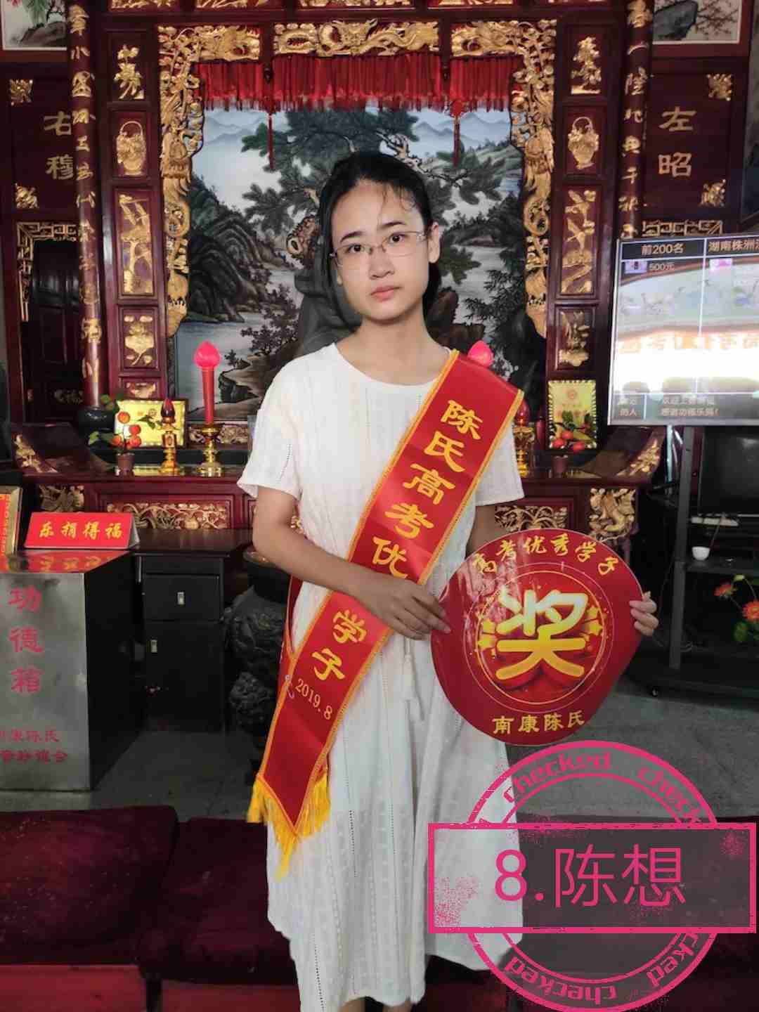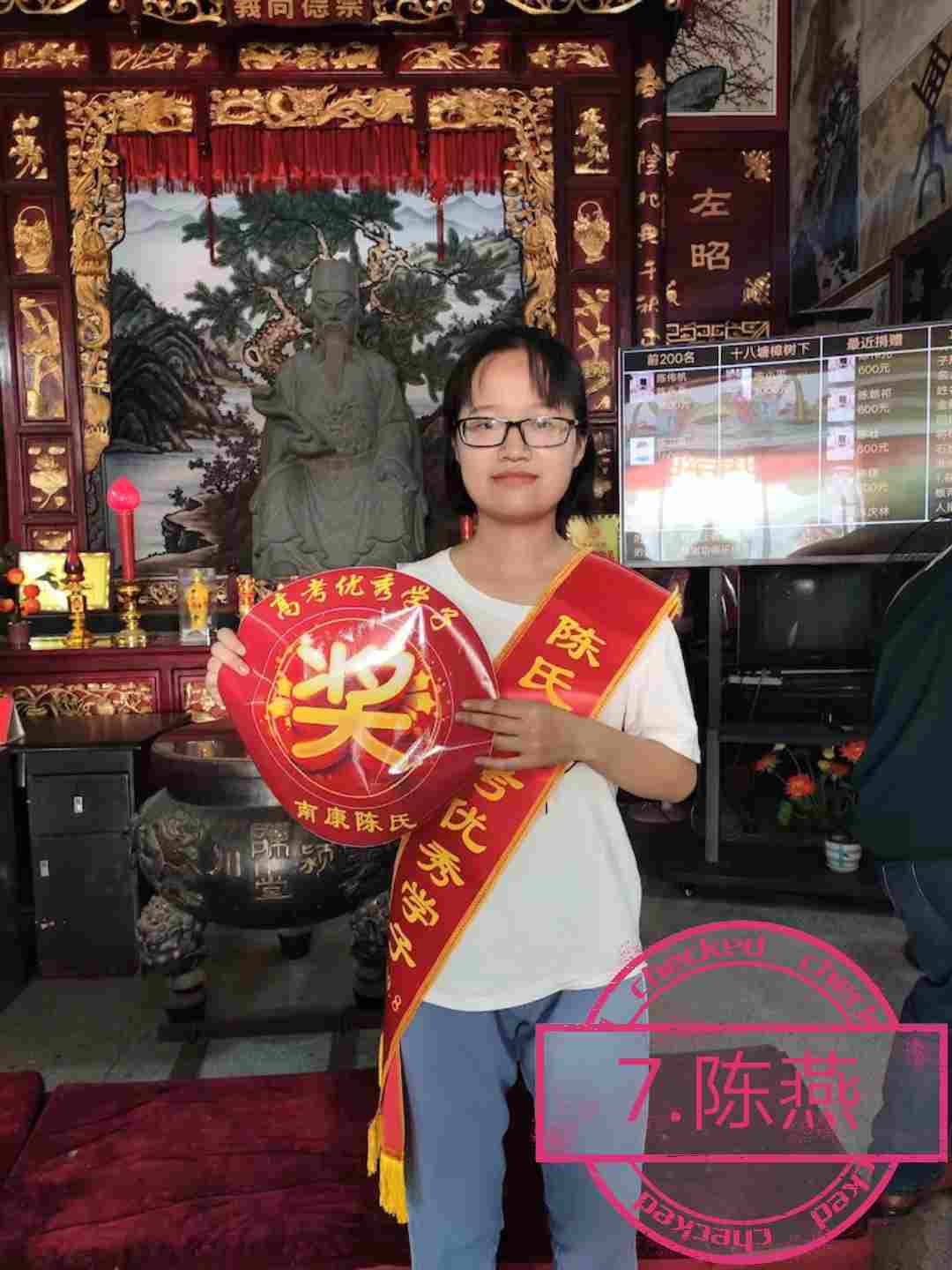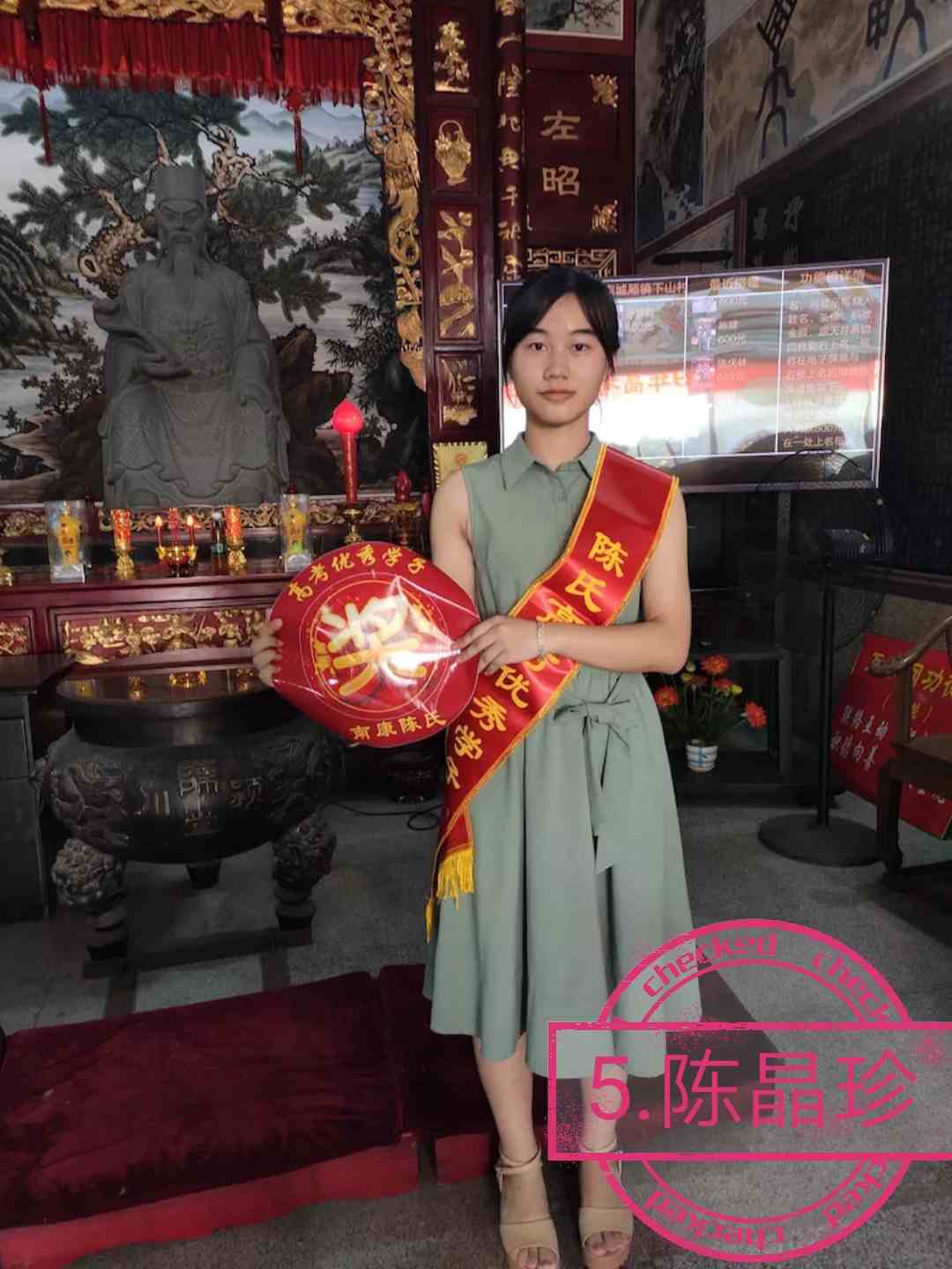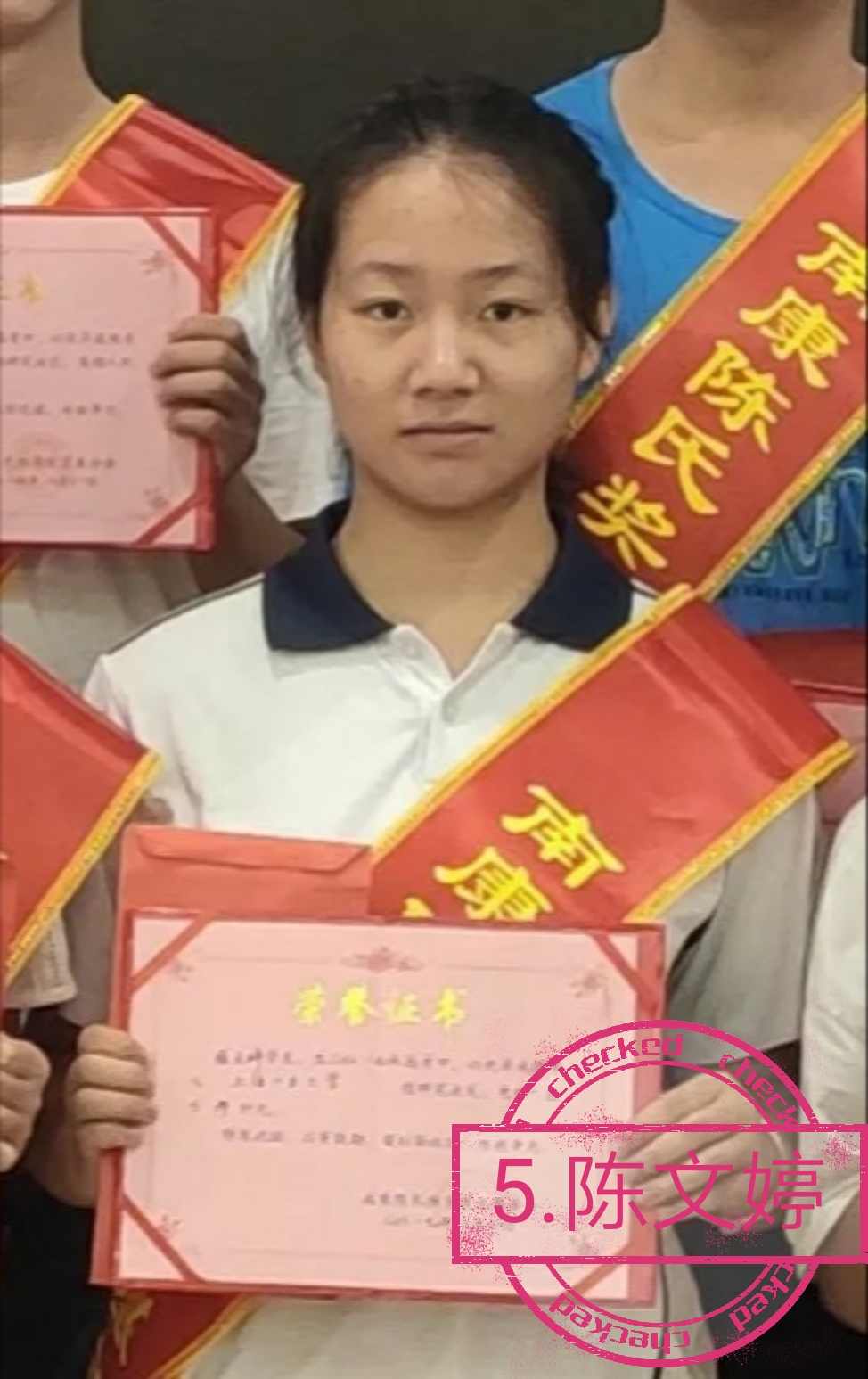 2019年南康陈氏获奖优秀学子,文史类共5名。