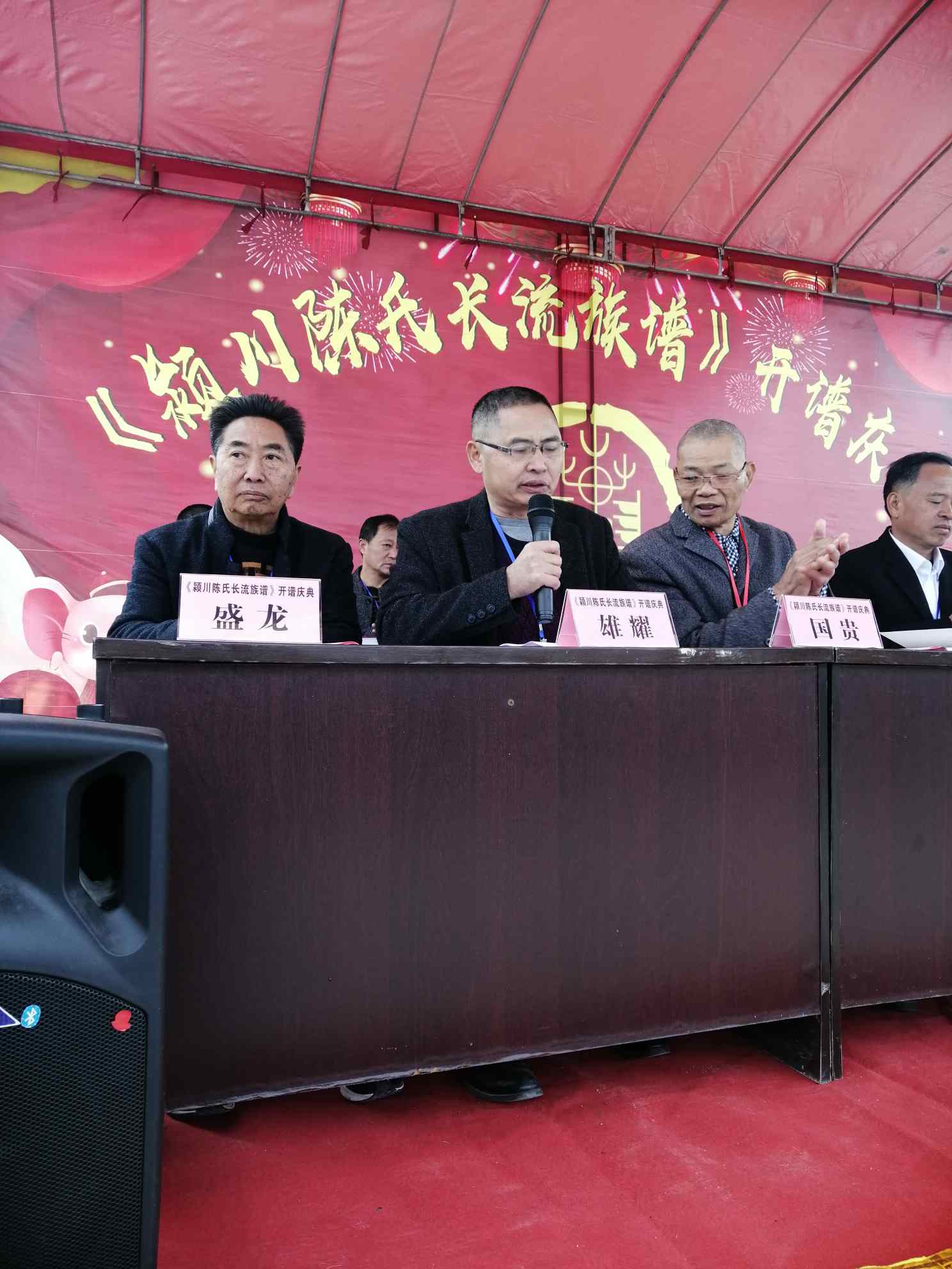 特载:永定区陈氏宗亲联谊会执行会长雄耀在《颍川陈氏长流族谱》开谱庆典大会上的讲话