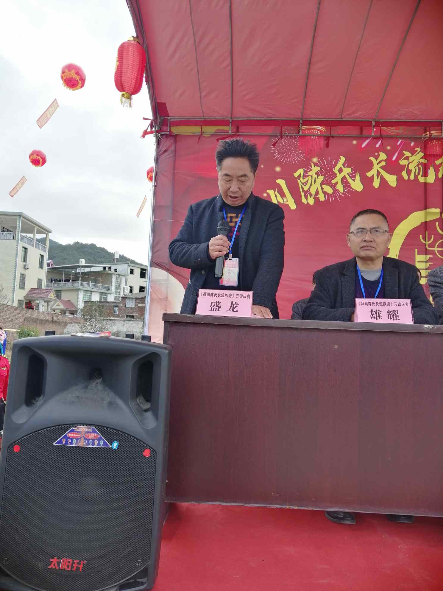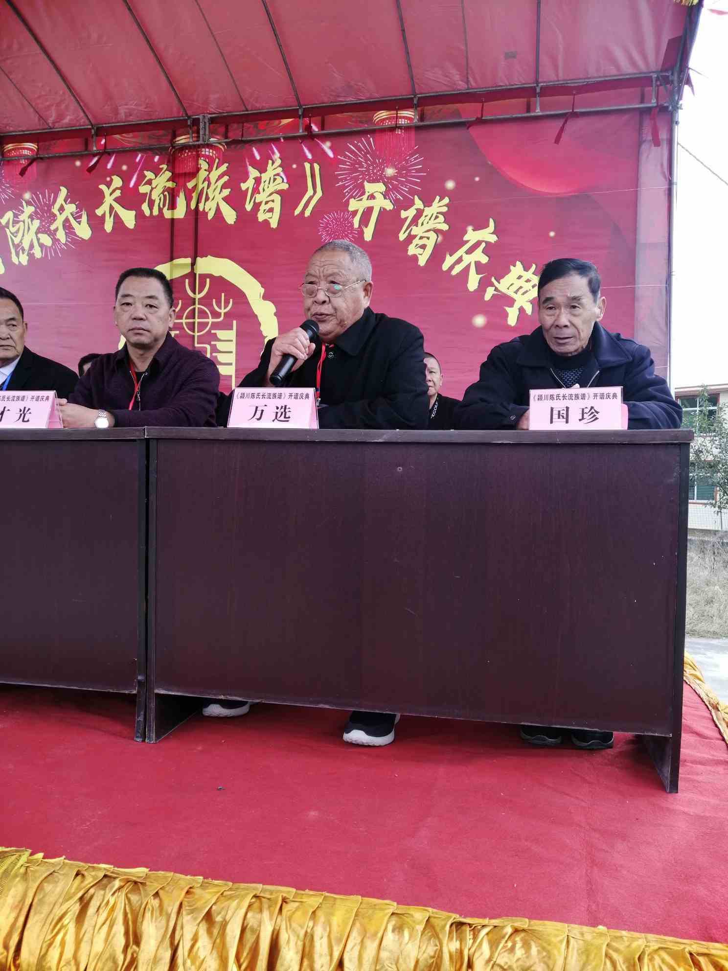 二、由永千会长宣布《颍川陈氏长流族谱》开谱大会开始。(鸣炮)三、全体起立,奏《陈氏会歌》四、讲话顺序: