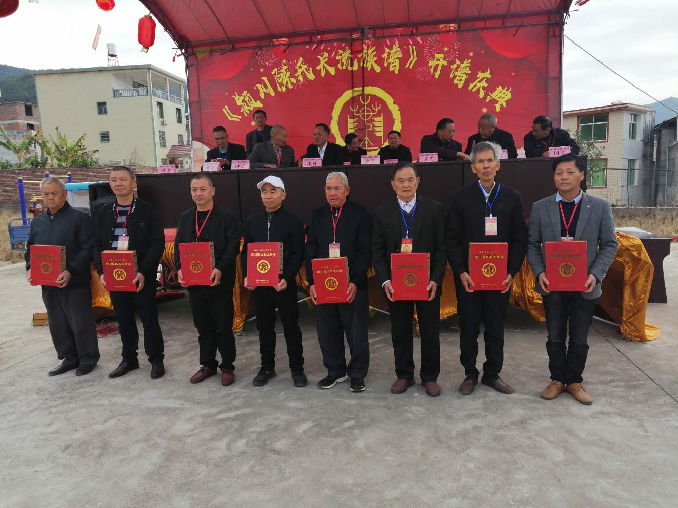 长流村支部书记沐祥、才光(乡贤代表)、国贵(虞舜陈裔全国文化理事会副会长)、雄耀(永定宗亲联谊会执行会长)、永千(会长)、盛龙(族谱主编.执行会长)、海年(副会长)、忠雄(矿业公司董事长)、忠和(荣誉主编)、柏村(龙岩龙聚理事会会长)、建业(荣誉主编)、明祥(龙岩长流乡亲联谊会会长)、国芳(龙岩陈陂宗长)、国珍(南靖竹园宗长)、泉开(族谱主编)。