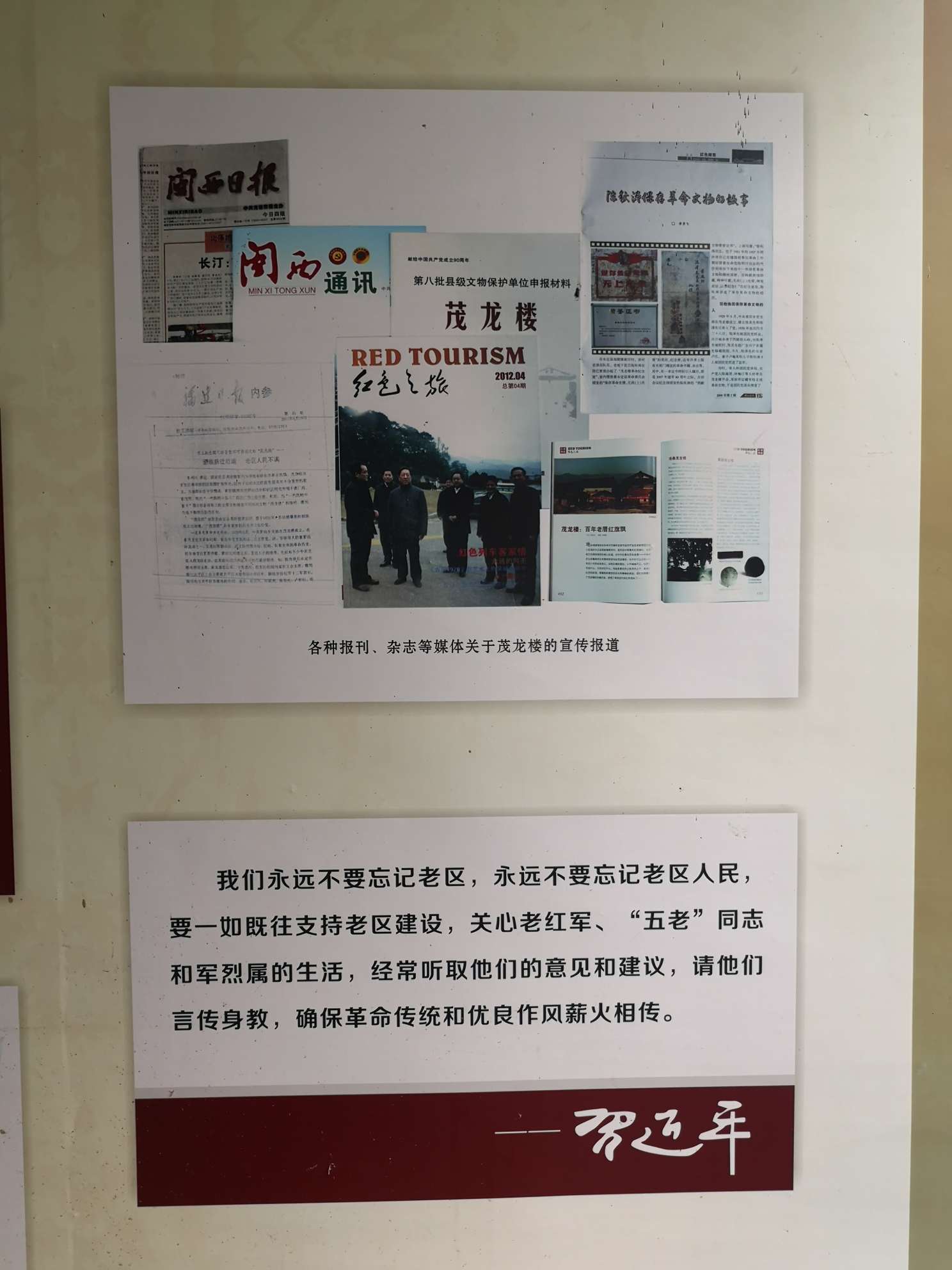 不忘初心,继续前行。我们相信,该展览在传承、弘扬茂龙楼革命精神,缅怀茂龙楼革命志士的革命情操和品格风范的同时,也必将激励后人努力学习、艰苦奋斗、砥砺品质,为全面建成小康社会,为实现中华民族伟大复兴的“中国梦”而作出应有的贡献!