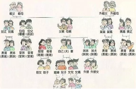 关于九族所包含的亲属范围,古人有两种截然不同的解释。其一认为九族全系父系宗亲,即指上至高祖,经曾祖、祖、父、已身、子、孙、曾孙、直至玄孙的九代的合称;其二,认为九族亦包括异姓有服的亲属,指父族四、母族三、妻族认为几族亦包括并姓百服的亲属,指父族四、母族三、妻族二。