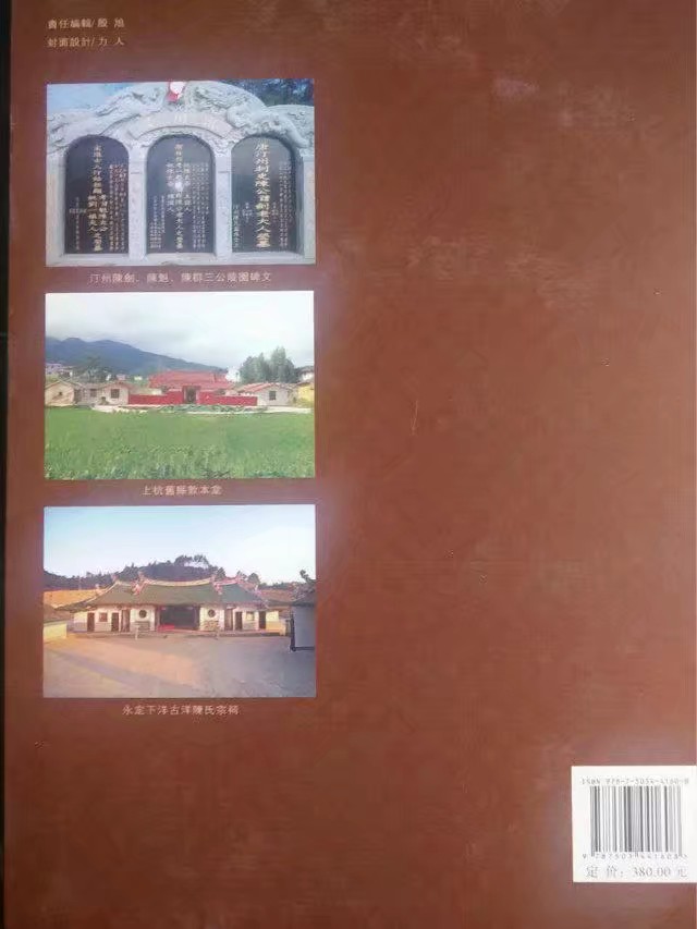 《福建义门陈》于2013年11月隆重出版发行,由义门陈汀州庄文史研究员、高级谱牒师、福建永定籍陈雄耀宗亲主编,我国权威的中国文史出版社出版,福建著名的福州市立人彩印公司印刷,面向全国统一发行。全书122万字,配12尊先祖像,祖祠、祖墓、寻根祭祖、联宗联谊等彩色图片300余幅,850个页码,大十六开精装本,一流的纸质与装订,图文并茂,是全面系统介绍福建义门陈氏家族(含外迁支脉)的第一部源流族谱,有较高的阅读价值与收藏价值,是我陈氏后裔必备的传家宝典。