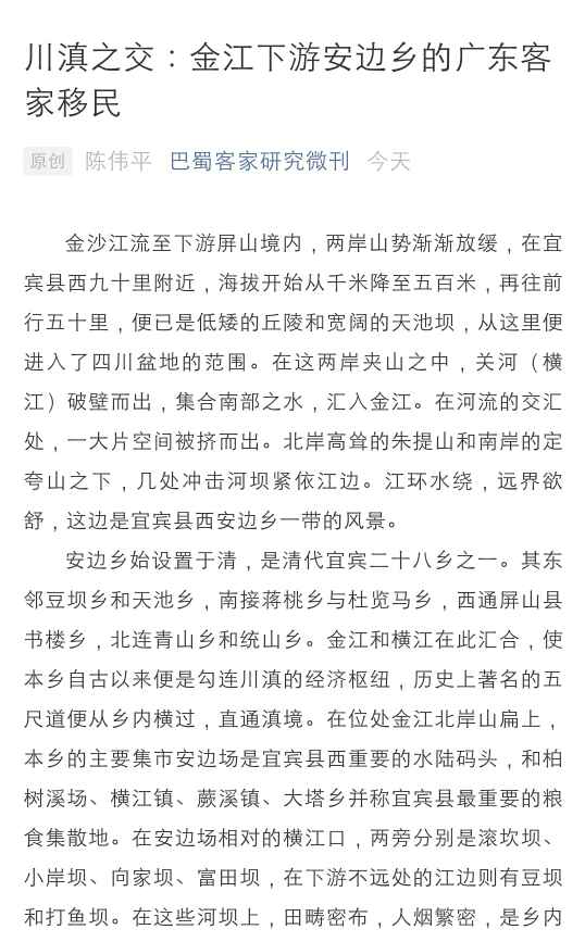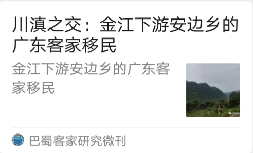 ——读《川滇之交:金江下游安边乡的广东客家移民》后,点赞转发全文。