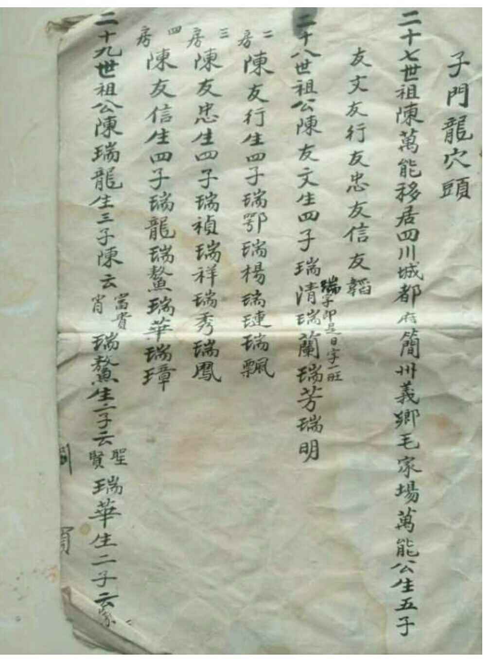 四川宜宾义门陈魁公后裔三十三世孙世先转发