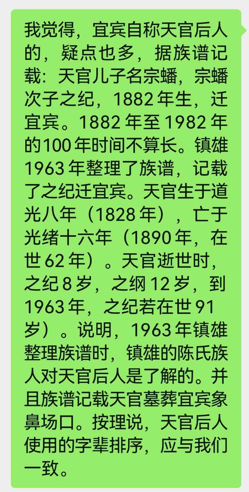 由此得出贵州和宜宾自称天官后人的均非天官后人。