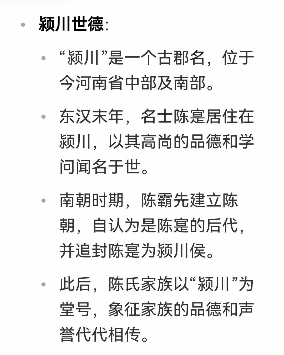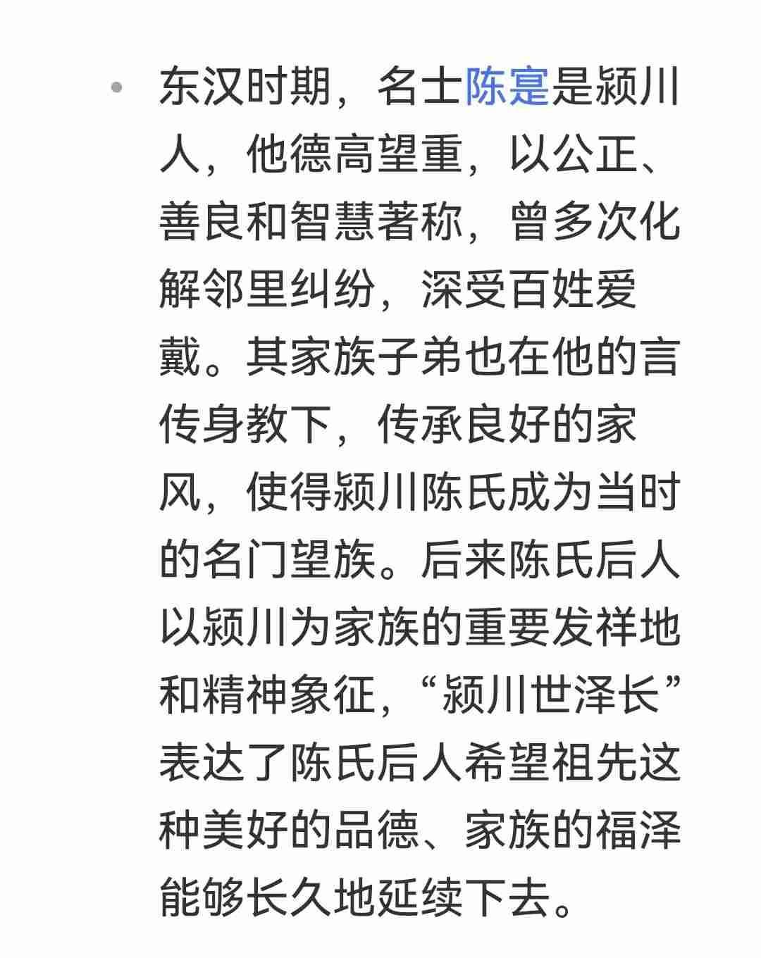○ 此后,陈氏家族以“颍川”为堂号,象征家族的品德和声誉代代相传。