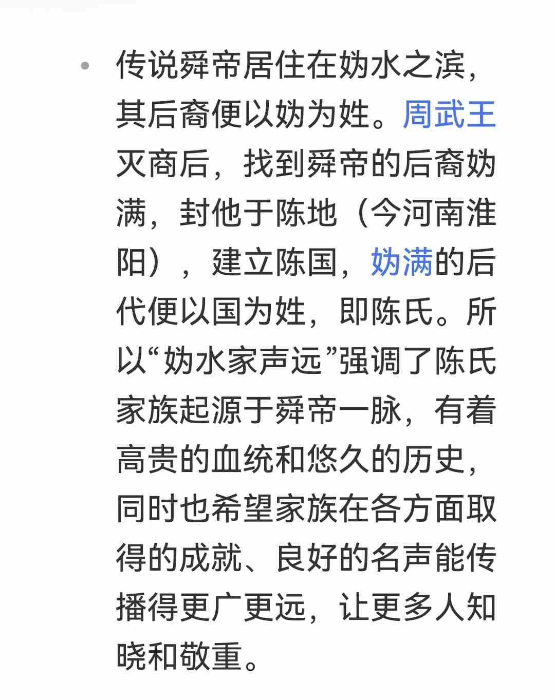 ○ 这表明陈氏家族是舜帝的后裔,强调家族的高贵出身和悠久历史。